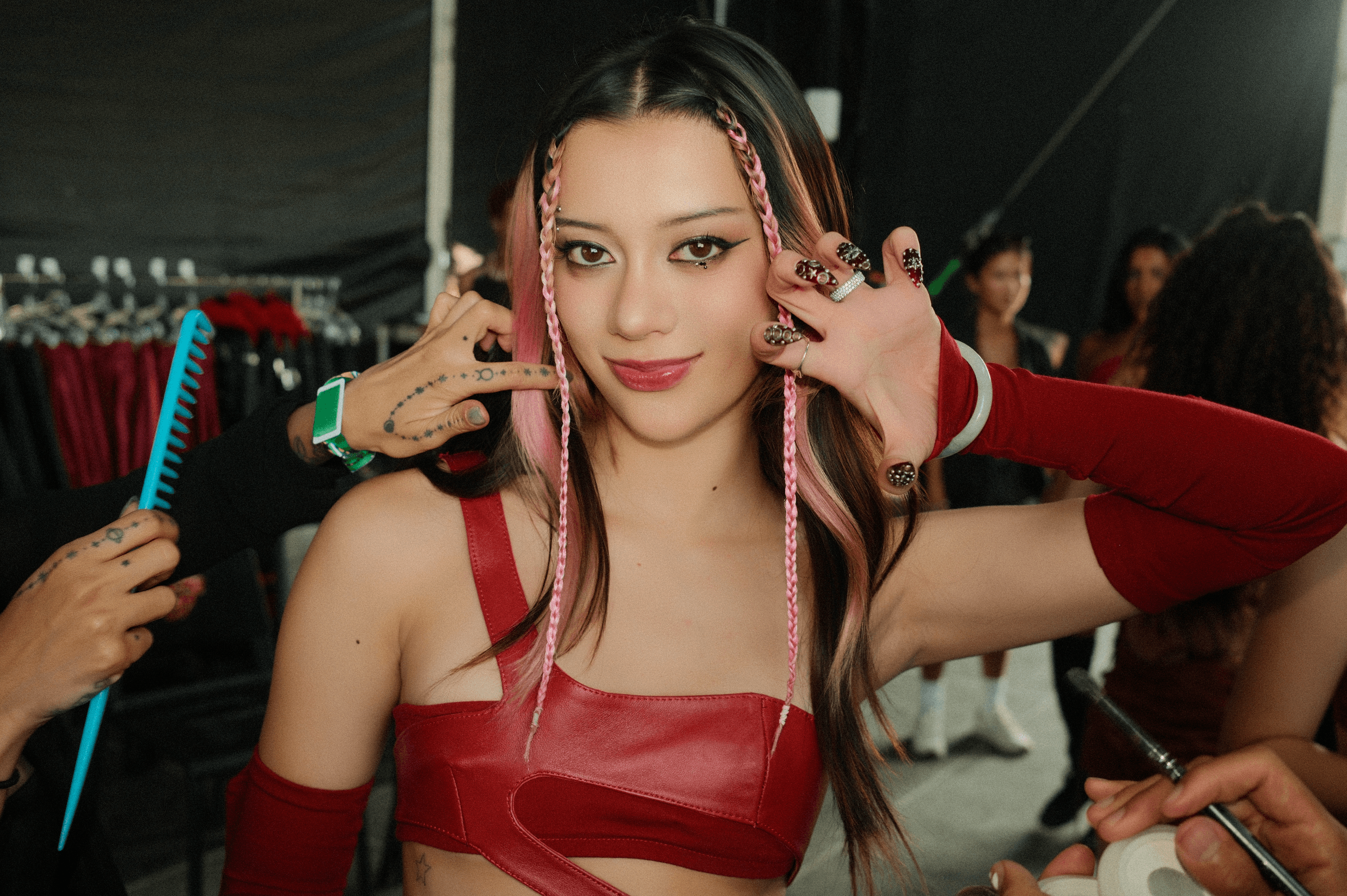 Preparation for those outfits began the moment the Lollapalooza booking was confirmed. “It’s such an amazing festival, so we wanted the looks to be extra special,” Humberto says. The result was a synchronized vision with enough individuality for each member to shine. “This is probably my favorite look we’ve worn on stage,” Megan says backstage. “They’re so extra and flashy—and so Katseye.”