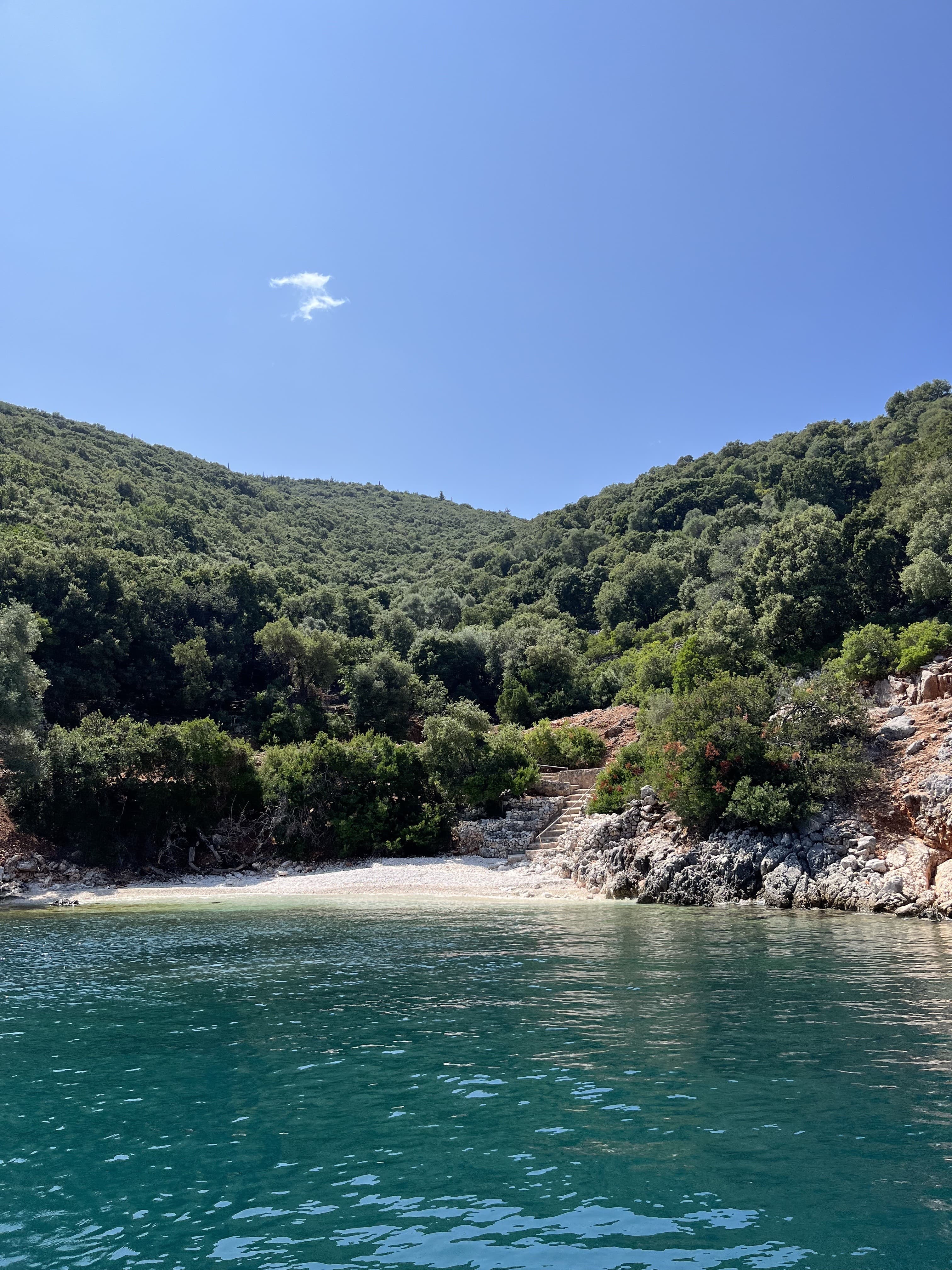 Mythos: Half the reason I picked Kefalonia as a destination was because it came recommended by one of my favorite insiders in the industry, The Thinking Traveller. They’re a villa rental company with outposts in trendy (but never too trendy) destinations such as Puglia, Corsica, and Kefalonia. My Villa, Mythos, was perched above the sea overlooking the world famous Myrtos beach to the left and the quaint fishing village of Assos to the right. Days here are spent gazing out from the panoramic plunge pool, reading from one of the many outdoor terraces, and enjoying meals by in-house chef Nektaria Tsirikou (think: an authentic home-cooked menu of lamb, salad, fresh bread, and walnut pie with Greek ice cream). It’s the perfect home base whether you’re traveling as a couple or with friends and family.