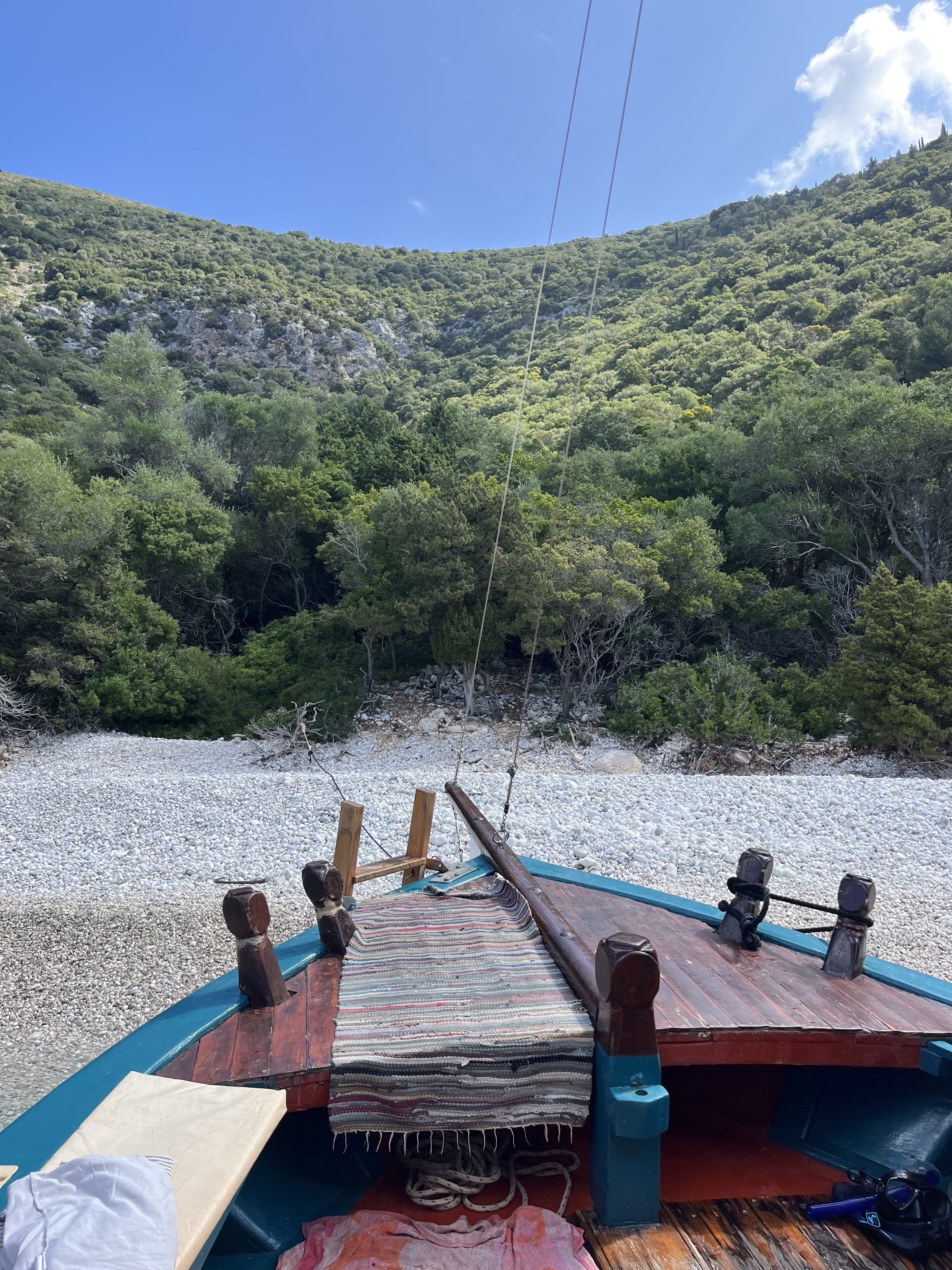 Mythos: Half the reason I picked Kefalonia as a destination was because it came recommended by one of my favorite insiders in the industry, The Thinking Traveller. They’re a villa rental company with outposts in trendy (but never too trendy) destinations such as Puglia, Corsica, and Kefalonia. My Villa, Mythos, was perched above the sea overlooking the world famous Myrtos beach to the left and the quaint fishing village of Assos to the right. Days here are spent gazing out from the panoramic plunge pool, reading from one of the many outdoor terraces, and enjoying meals by in-house chef Nektaria Tsirikou (think: an authentic home-cooked menu of lamb, salad, fresh bread, and walnut pie with Greek ice cream). It’s the perfect home base whether you’re traveling as a couple or with friends and family.
