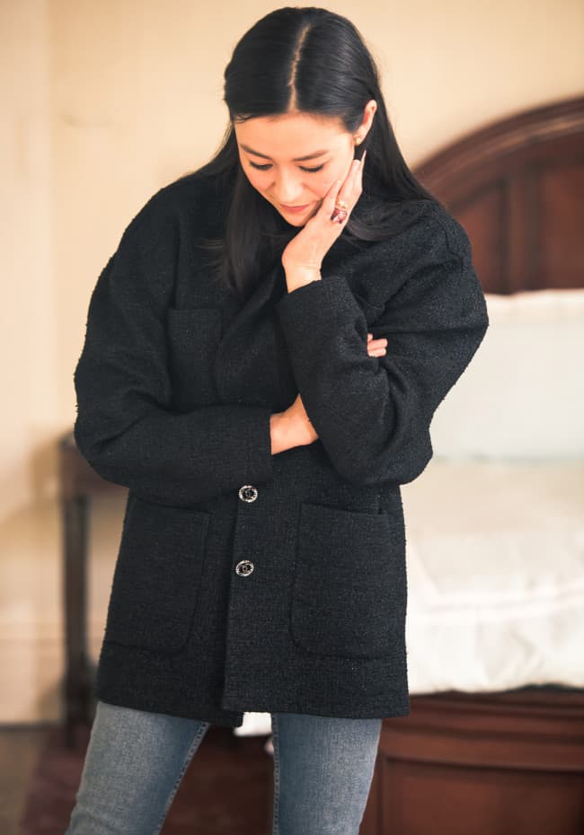 “When I put on a CHANEL jacket, it actually conjures these really deep and very nostalgic memories of me and my mother. My mom worked my whole life; she was the CFO of The New School, and she did finance for very large nonprofits, but she was an immigrant from China, and she’s about 5'2". My memory of my mom coming home from work is her closet of CHANEL jackets. She wouldn’t wear CHANEL on the weekend, but she would wear CHANEL going to work, and then her high heels. And so whenever I put on a CHANEL jacket, it brings me the confidence of, you know, kind of generations of women who aren’t afraid to pursue a dream or pursue a career and enjoy what they wear and look good. It helps bring just that extra bit of confidence; it’s very helpful.”