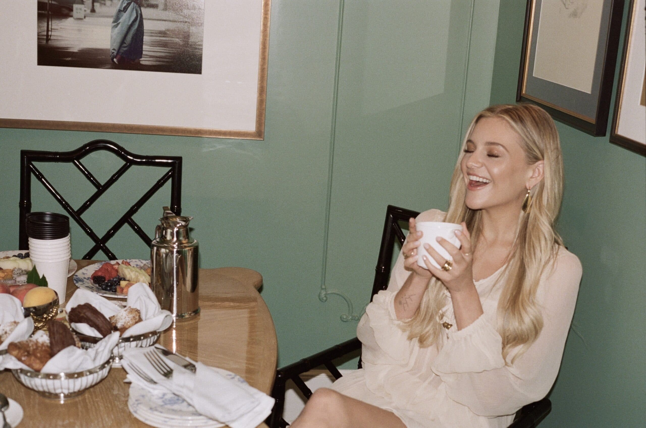 Fresh off the heels of an impromptu girls trip to Paris and on hiatus from her Patterns tour until fall, country music star Kelsea Ballerini is making a pit stop in New York City for a moment of calm. "I'm not used to having time off. It's like, what do I do?" she ponders. Currently, she's lounging on a velvet sofa in a Manhattan hotel suite in NoMad, dressed in a tiered cream silk chiffon mini-dress and suede knee-high Isabel Marant boots. "They're so comfortable," she says, before pouring herself a hot black coffee, unfazed by the 90-degree heat outside.