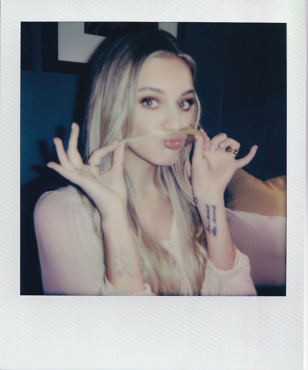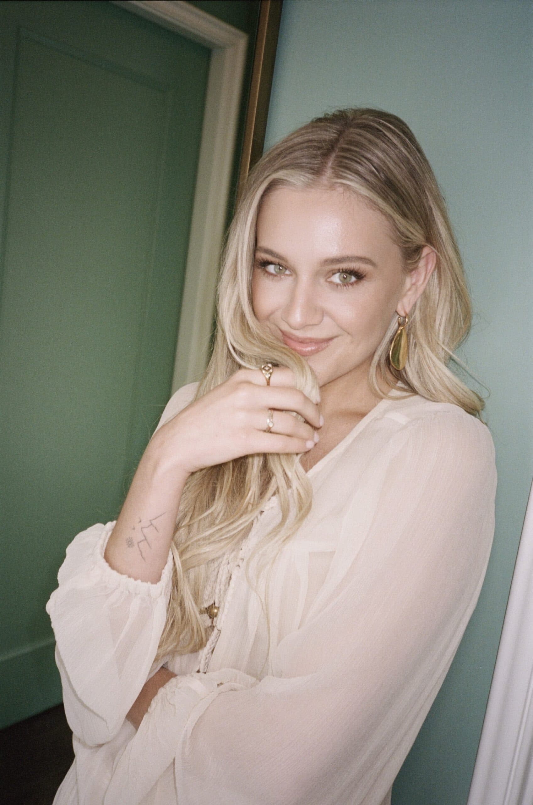 KB: "It's so funny, in my early twenties at home in Nashville, I wouldn't leave to go to the grocery store without my fake eyelashes on and my highest heels."