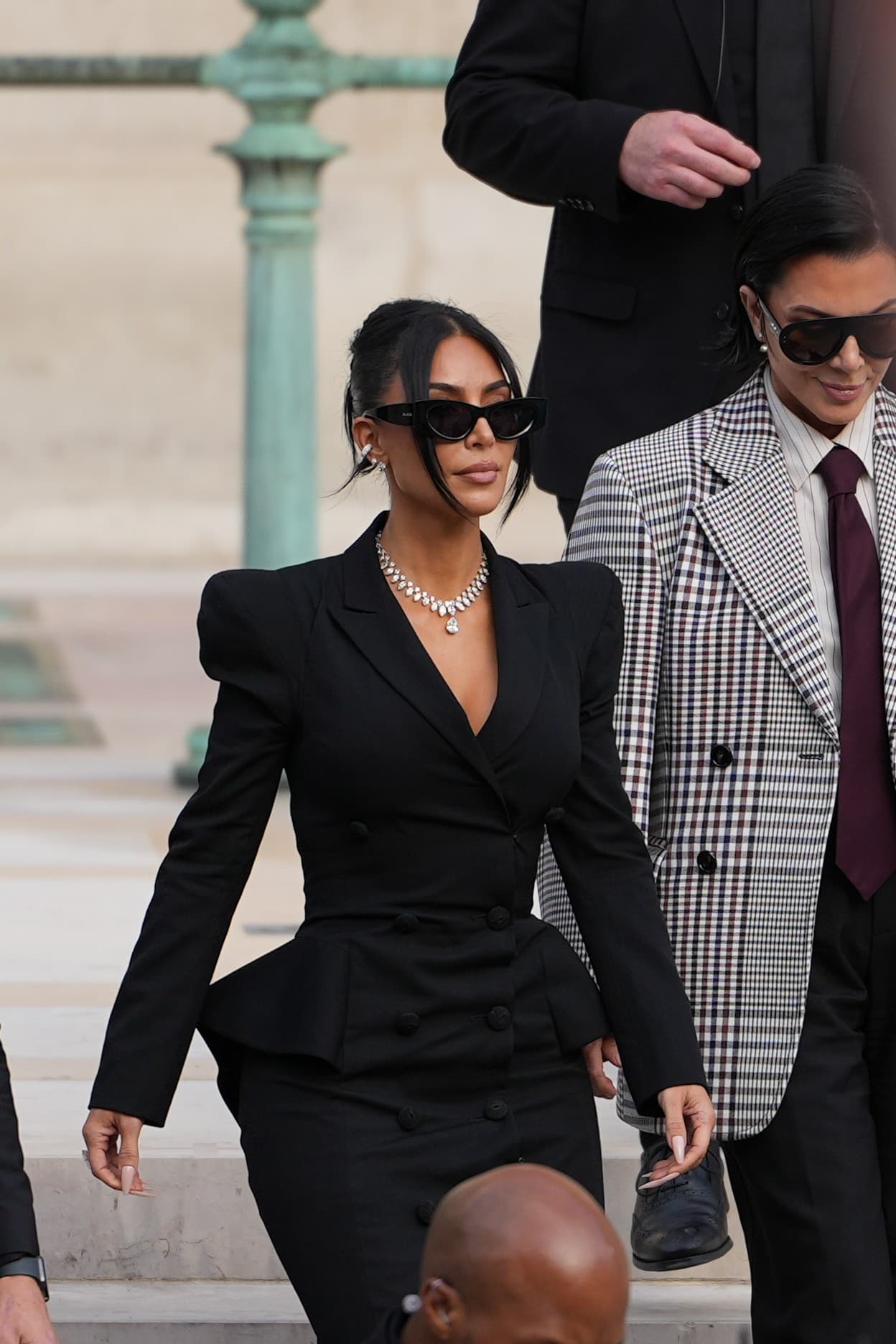 Surrounded by hoards of journalists and photographers, Kardashian ascended the steps of the historic site wearing an archival power skirt suit from John Galliano's Spring/Summer 1995 collection, and dripping in so many diamonds that the statement made itself. Around her neck was an eye-watering Samer Halimeh necklace, alongside a diamond anklet, and a stack of Repossi and Briony Raymond earrings.