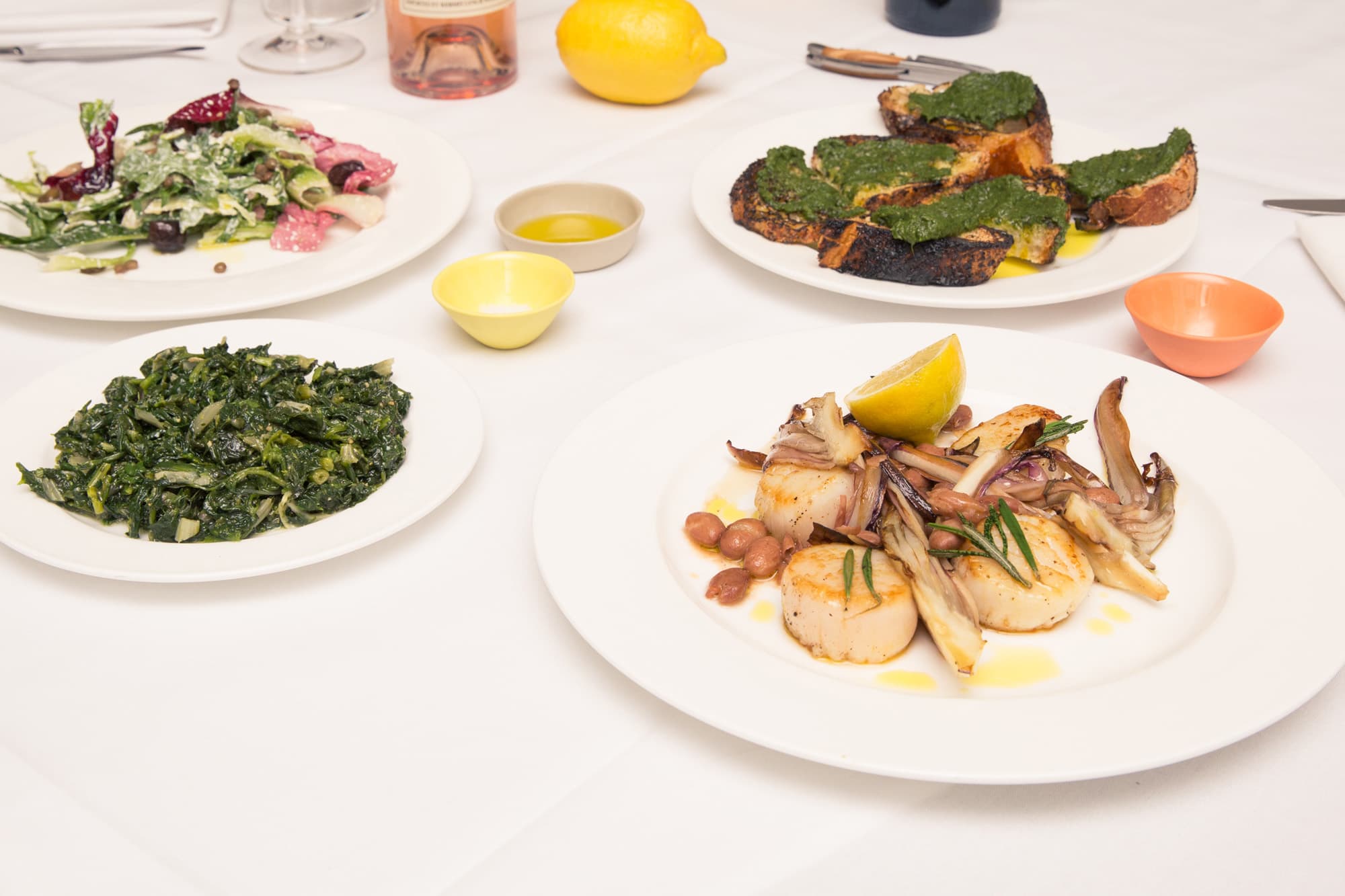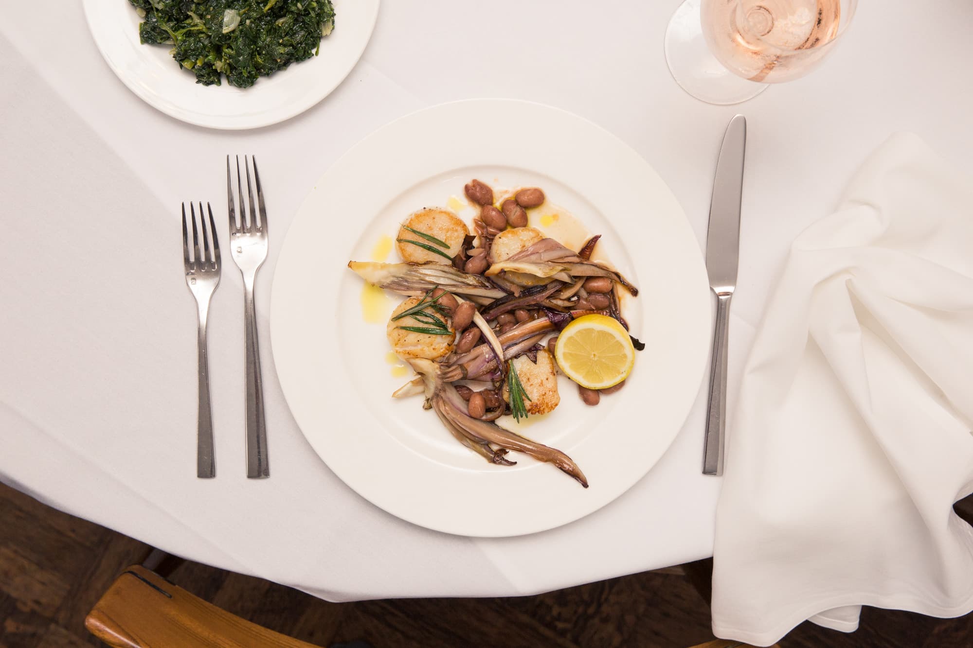 Scallops roasted with treviso Tardivo, borlotti beans, red wine vinegar, and rosemary