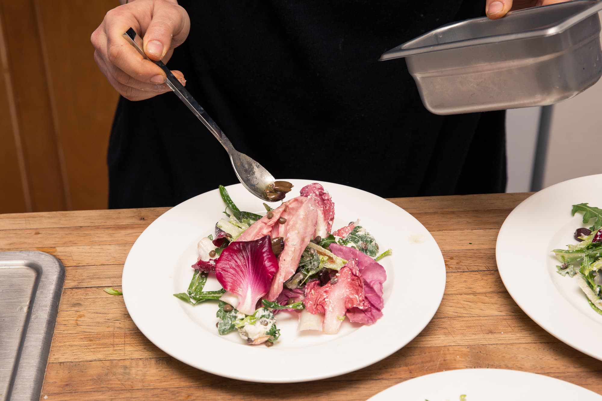 6. Serve on a plate with a scattering of beans and the tardivo. Finish with olive oil.