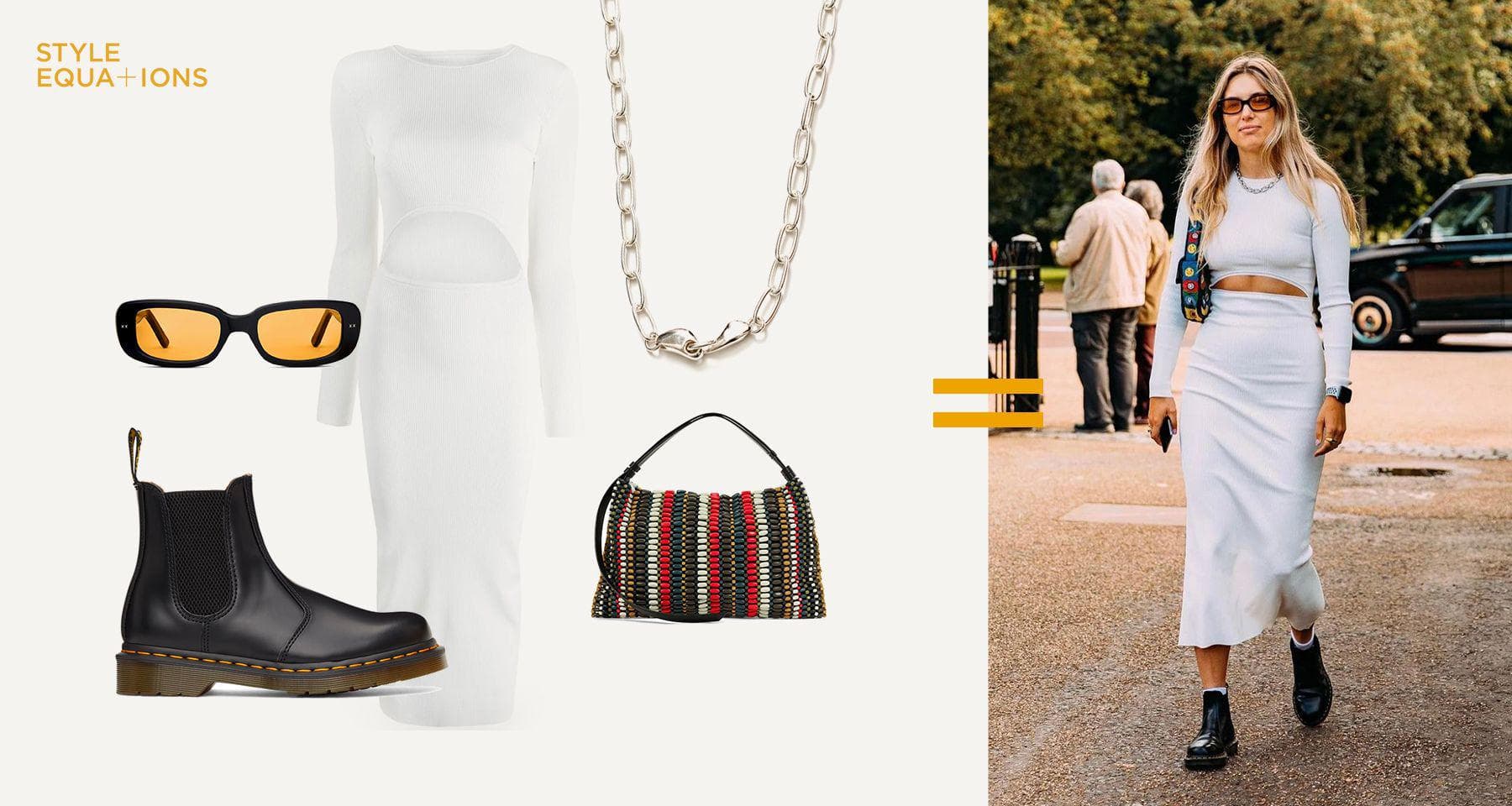 Right photo: Courtesy of Instagram/@aemiliafayIn between seasons of polarizing weather, experiment with different accessories like a pair of chunky Chelsea boots mixed with funky sunglasses. Top everything off with a chain to tie the whole thing together.