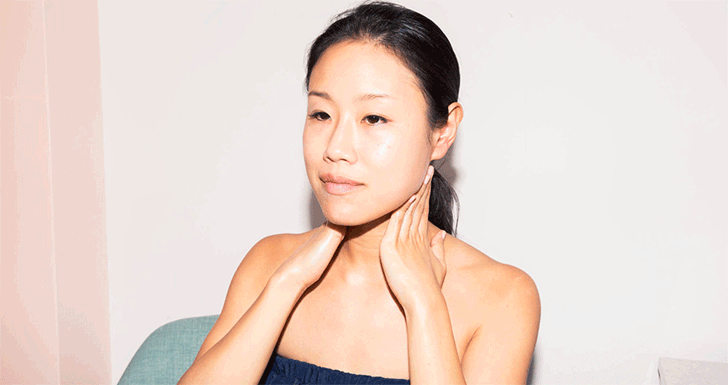 “Koreans are obsessed with the V-line—which is your chin to your ears—so that it’s not sagging and it looks like a V. This massage is for your lymph drainage and circulation—the toxin buildup in your lymph system really affects how your skin looks.”