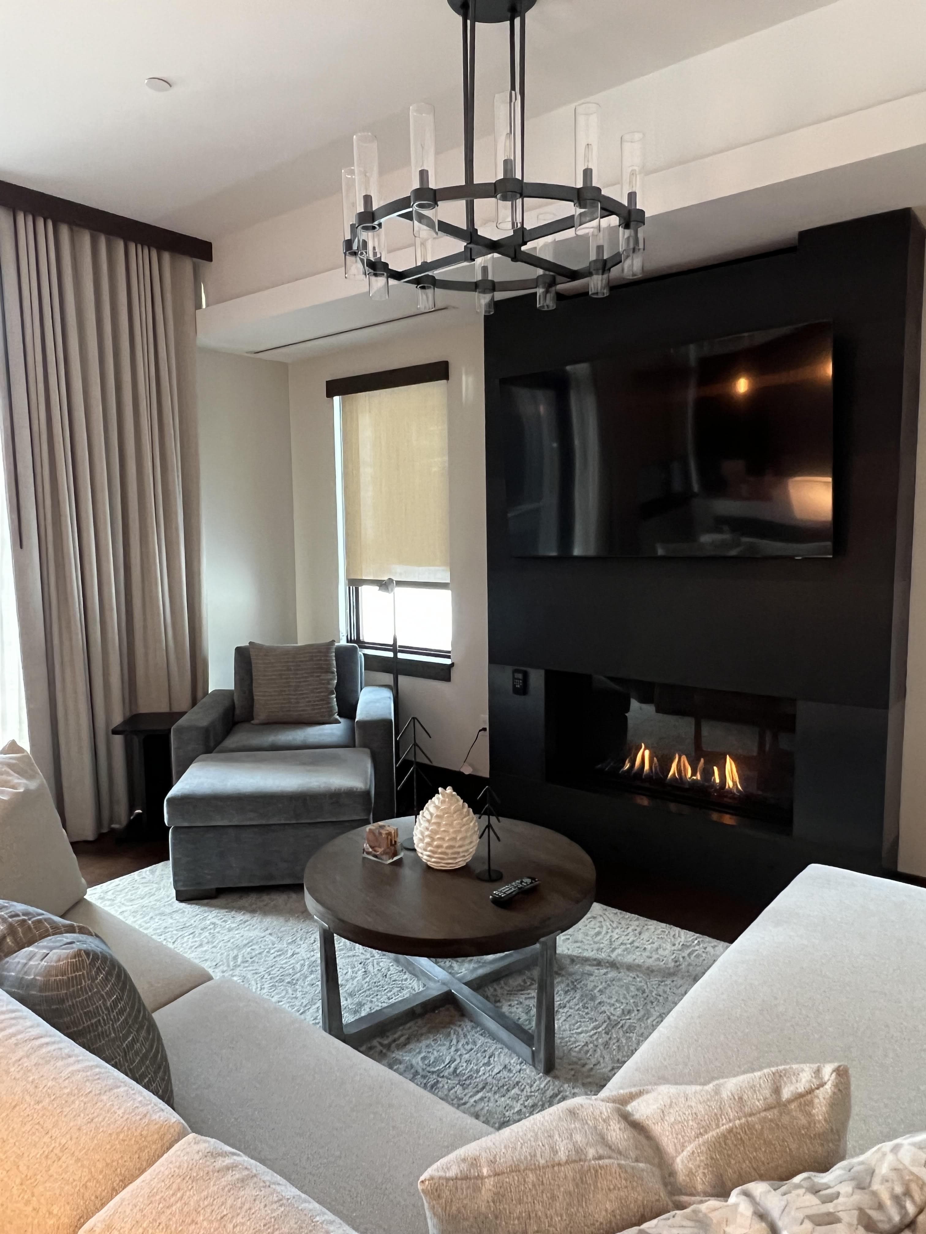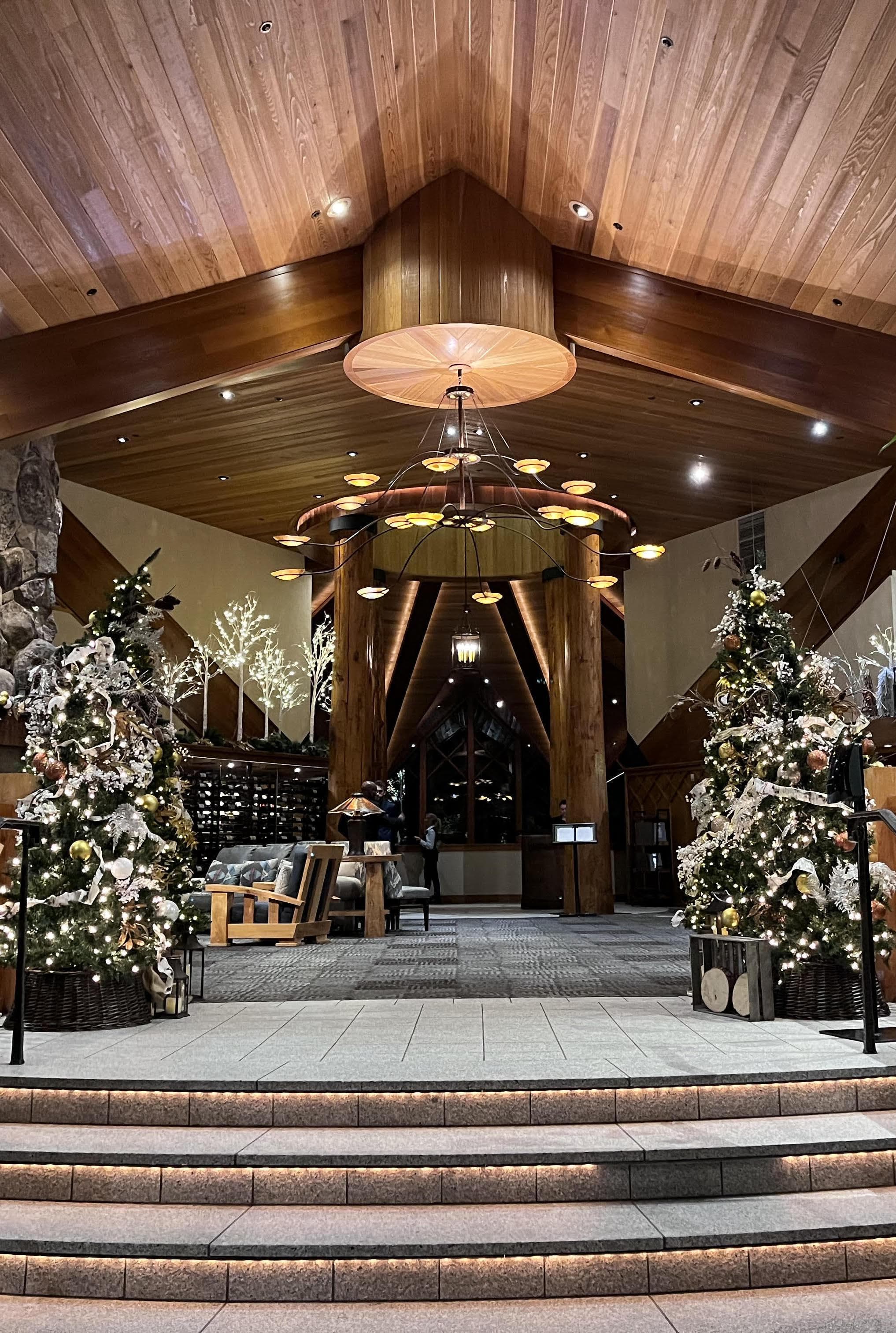 The living room, which features a cozy fireplace.For a low-key-yet-elevated winter resort feel, book a stay at Edgewood Tahoe. Located on the shores of South Lake Tahoe (about an hour drive from the Reno airport), the 235-acre lakefront property is home to 154 guest rooms and suites, an 18-hole golf course, an ice skating rink, an 8,500-square-foot spa, and three on-site restaurants. In November 2022, the property debuted its brand-new Villa Suites, which is where I had the privilege of staying.