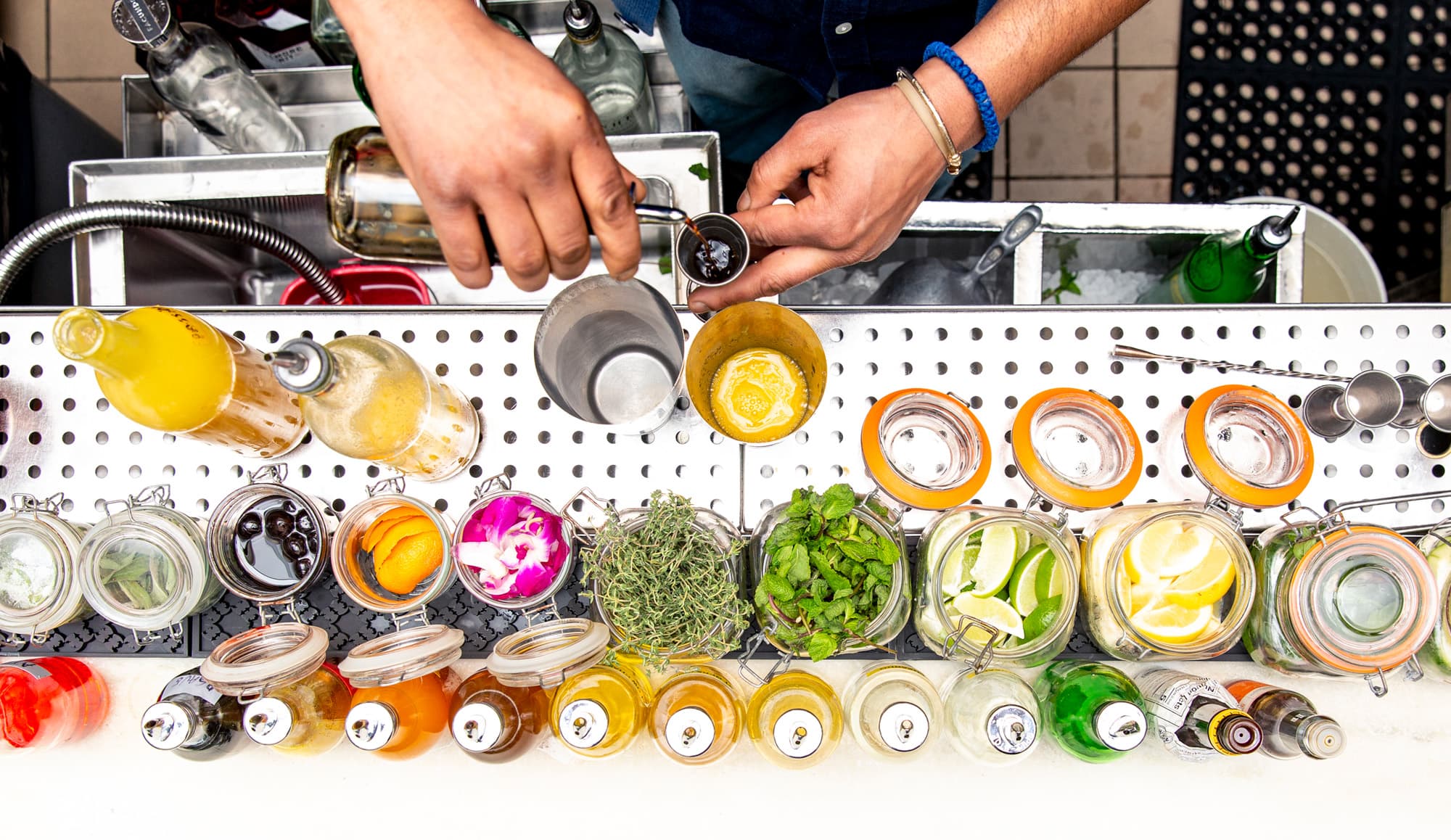 with co-founder Scott Robert Williams, discussing the Lower East Side bar’s marked appeal as he made two of their signature cocktails. Currently, like every other restaurateur and bar owner in the city, Williams and his business partners are strategizing how to weather the storm of a pandemic that’s brought business to a halt. If they have one thing going for them, though, it’s the cool, indelible vibe that’s made Las’ Lap one of the city’s most talked-about and crowd-pleasing haunts. We’ve experienced it on idyllic, rum-filled nights set to a soundtrack of Biggie and Jay-Z, and were treated to that same hospitality the day of our shoot.