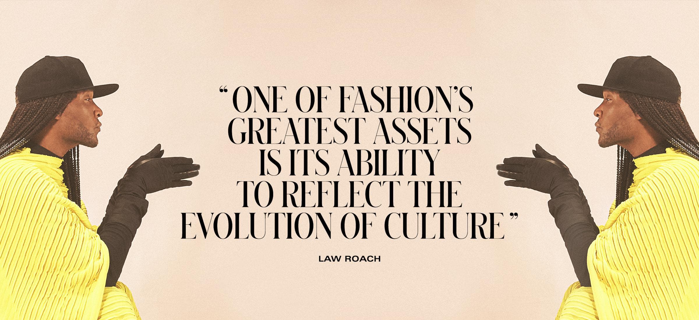When I ask if he views his portfolio as a raising of the sartorial bar, a call for fashion selections to represent more than just what you see on the surface, he says not necessarily. "I think people should work within the guidelines and the space that they create for themselves. I think people should do what they want," he elaborates. "I do what I want. I say what I want. I work with who I want." This is the ethos that often accompanies many of life's game changers and is currently reflected in the minds of those shaping fashion. He elaborates, noting that the fragile line between a good stylist and great stylist is perched atop your desire to work and to be seen. And Roach? He's obsessed.