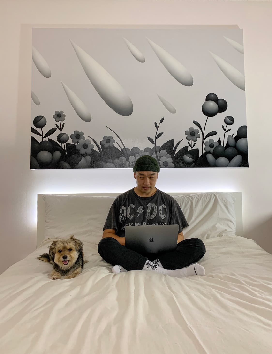 “The first piece I think I ever bought was Shepherd Fairey’s Obama Hope poster. I grew up in San Francisco, and Shepherd Fairey and his Obey street art was all around us, and I just didn’t really put the recognition of what I saw in the street back in the art back to the artist until the Obama poster came out. Then I moved to New York City. Street art was always something of interest—being in New York, I would see it all the time. I’ve always been kind of more design-centric in a way, so I think it was just merging what I would see in the street and how I would want to decorate my home. As I grew professionally, I had more of a disposable income, so it just made sense to bring more art and to gain an opinion to the things that I would want to surround myself with on a daily basis. But it kind of all started from that Hope poster.”