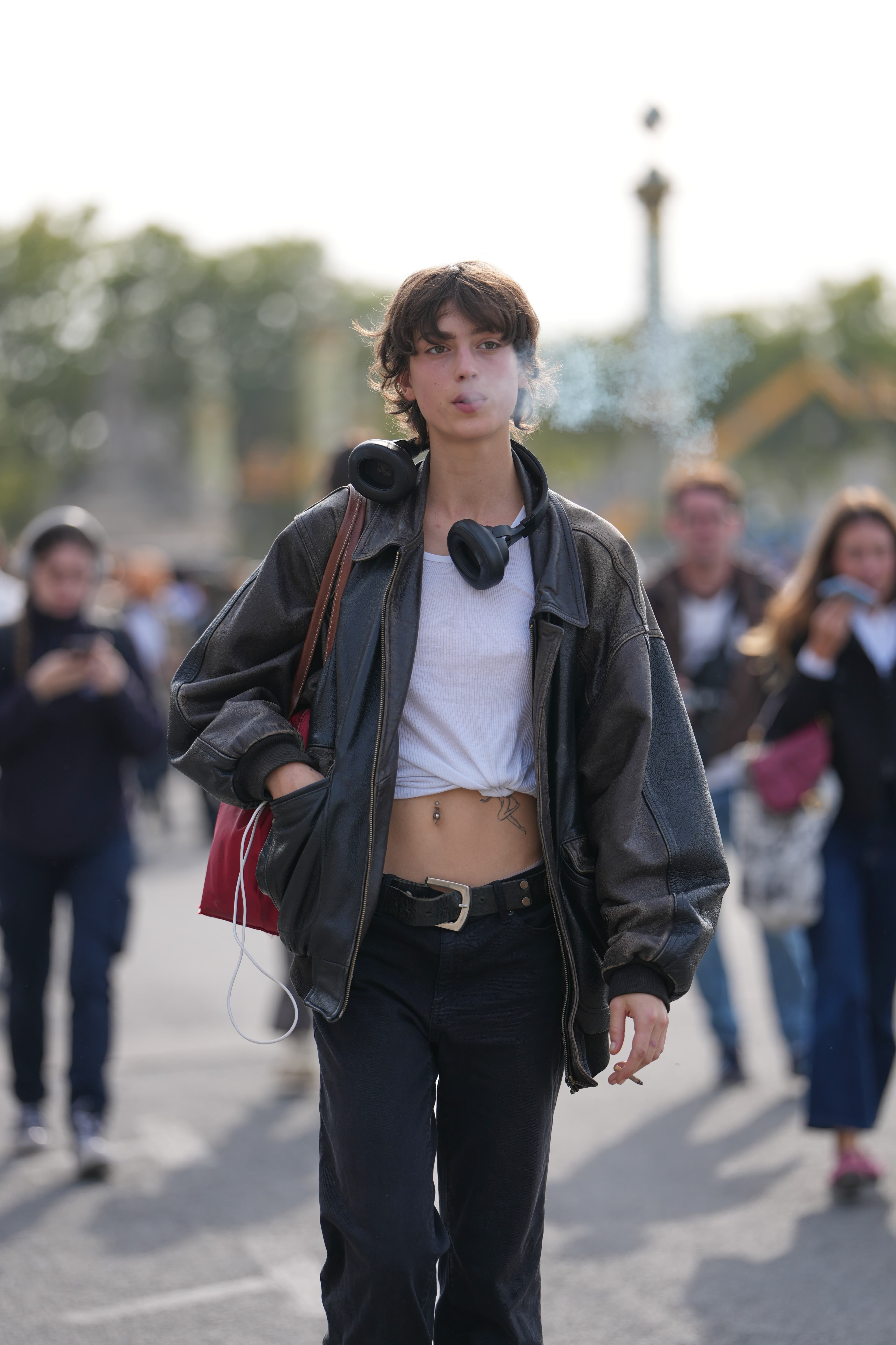 Enfants Riches Déprimés Spring/Summer 2026 Getty ImagesFor their Spring/Summer 2026 collections, designers like Rick Owens, Rabanne, Casablanca, Enfants Riches Déprimés, and Torishéju all featured leather bomber jackets on their Paris runways with personal touches and unique details: racer stripes, zippers, embellishments, and more. Meanwhile, attendees also turned to the staple time after time and with styling choices that highlight the jacket's versatility: a cropped silhouette with sweatpants, a bomber with distinct pocket detailing over a more dressed up look, and an oversized jacket with a simple white tee and black jeans.