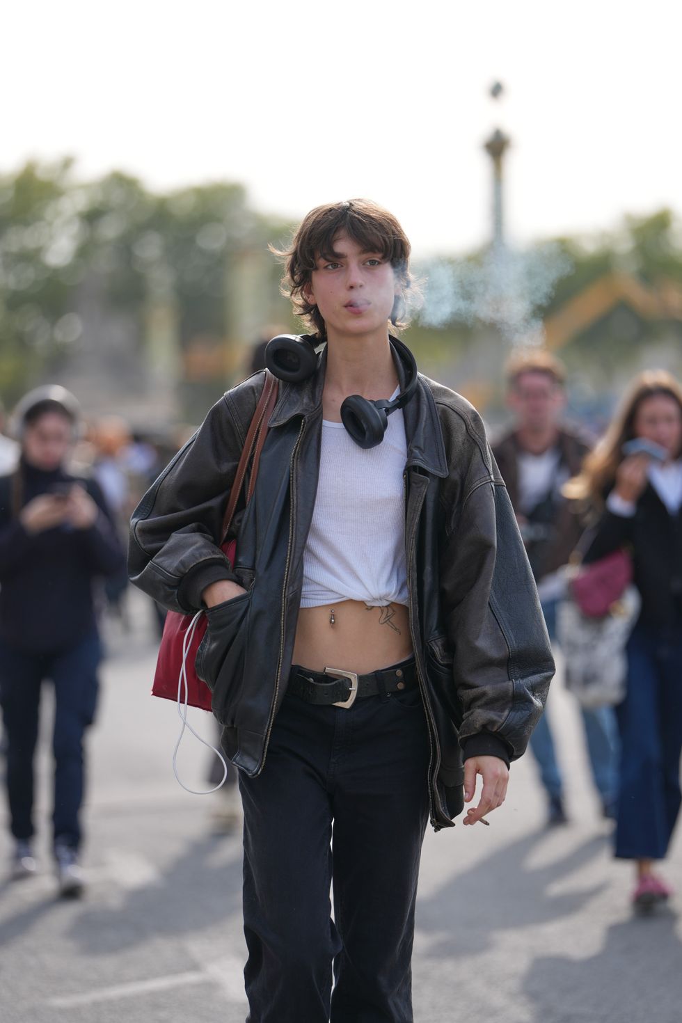 For their Spring/Summer 2026 collections, designers like Rick Owens, Rabanne, Casablanca, Enfants Riches Déprimés, and Torishéju all featured leather bomber jackets on their Paris runways with personal touches and unique details: racer stripes, zippers, embellishments, and more. Meanwhile, attendees also turned to the staple time after time and with styling choices that highlight the jacket's versatility: a cropped silhouette with sweatpants, a bomber with distinct pocket detailing over a more dressed up look, and an oversized jacket with a simple white tee and black jeans.