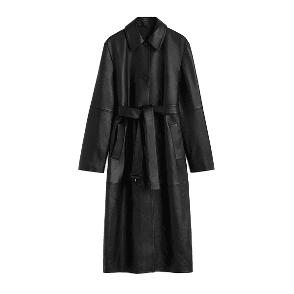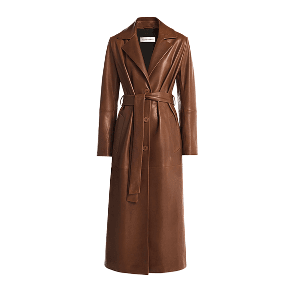 On Burberry's Fall/Winter 2025-2026 runway, the British brand best known for trench coats presented leather interpretations of their classic silhouettes: reddish brown, black, and deep green belted trench coats of varying lengths. Elsewhere in the Fall/Winter collections presented earlier this year, Fendi offered a leather trench with a buckle belt detail, while Khaite styled one open with weather appropriate layering underneath, Chloé paired a rich brown matrix-esque silhouette with a fur scarf and chain belt, and Alaïa featured one with a super puffy collar detail that played with volume and dimension. This is all to say that the leather trench coat is incredibly versatile, are created in unique ways, and the styling options are endless.