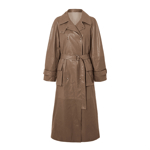 Brunello Cucinelli Belted Double-Breasted Leather Trench Coat