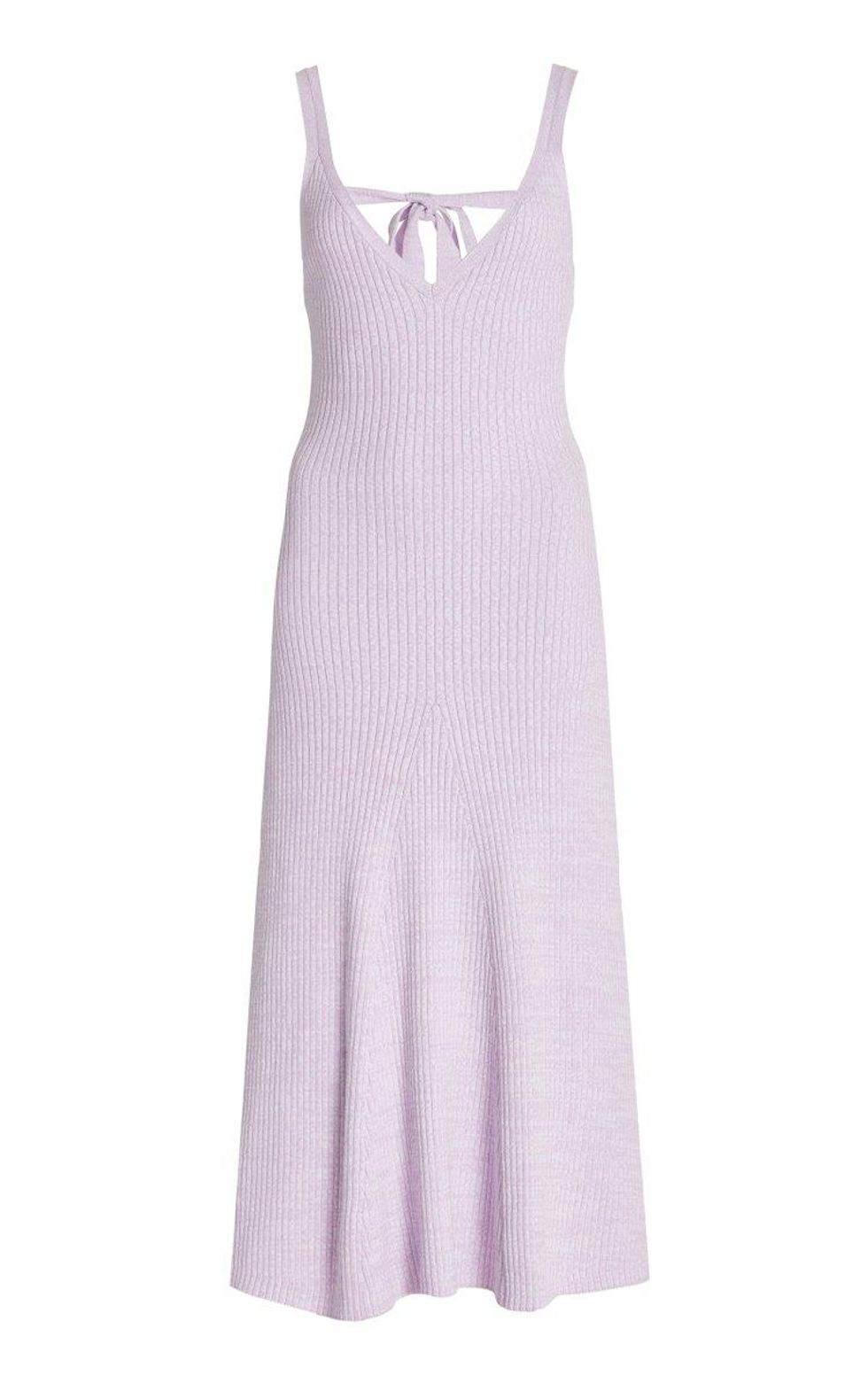 But as we move toward the fall/winter season, lilac stands out as fashion's new *it* color. The soft shade of purple was seen on the runway in many of the ready-to-wear collections. At Jil Sander, a structured, long double-breasted coat in a light, almost marshmallow-like lilac graced the runway with its matching gloves. In a similar fashion, Salvatore Ferragamo used the color to showcase versatility in textures. The collection included a maxi-style bodycon dress that was adorned with light draping, an oversized fuzzy V-neck sweater, a tailored pair of wide-flair trousers, and a structured top paired with a gauzy bottom. The true test of a color's lifespan in fashion is in tonal styling, i.e., can it be worn head to toe whilst remaining chic? A question that was boldly put to rest at Givenchy with a figure-fitting, long-sleeve lilac maxi look complete with muted purple tights, lilac rubber boots, and a soft violet chain bag.