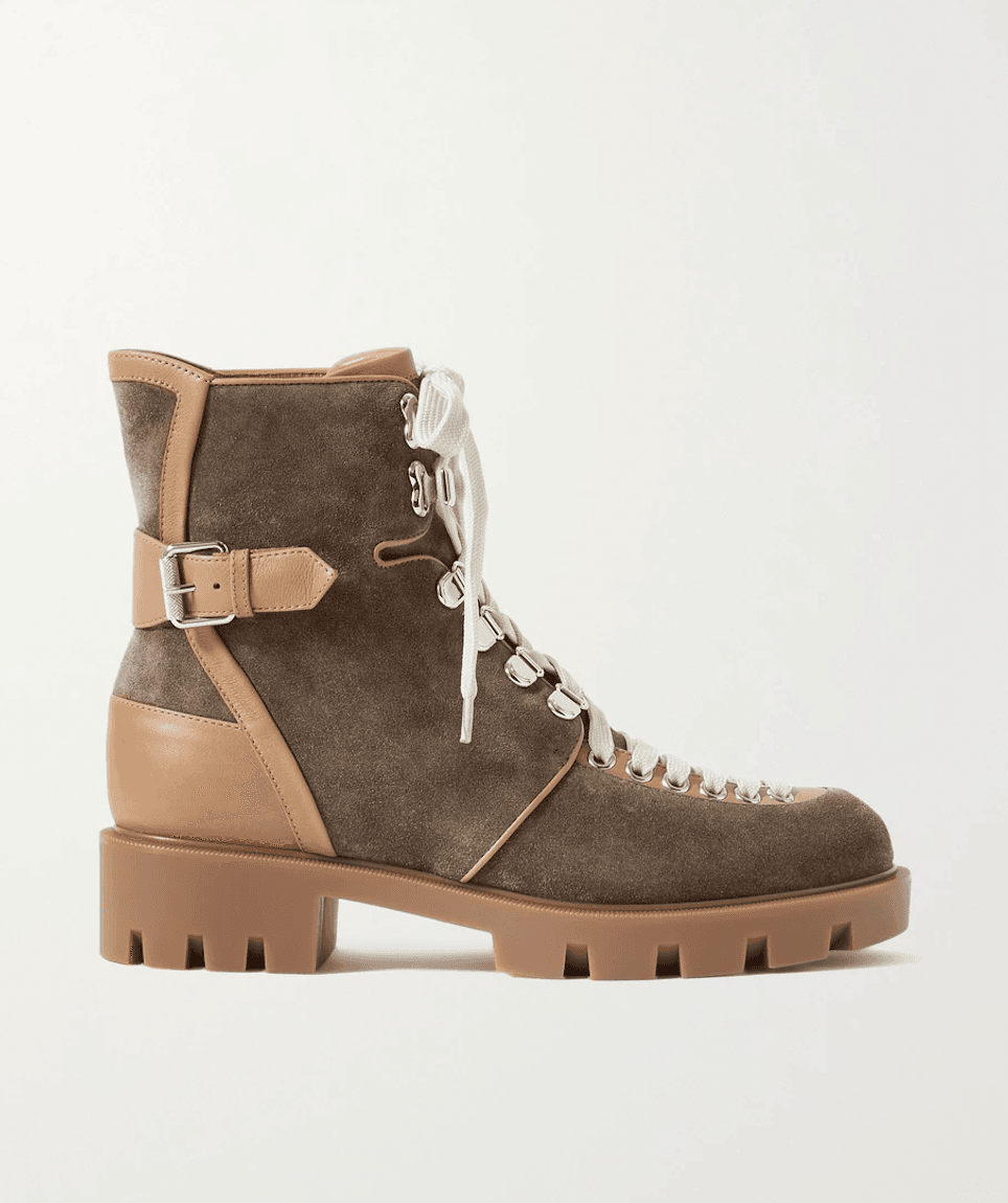 Buckled Leather-trimmed Suede Ankle Boots