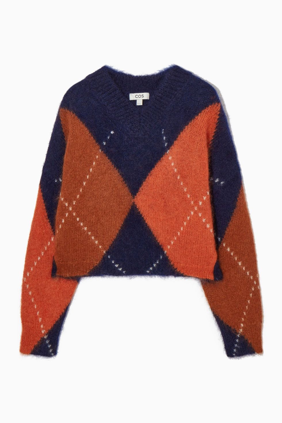 At its essence, this ensemble is made of classics: an argyle sweater, khakis, and socks, but its execution is way more fun. With a cropped sweater, slashed hemline, and sheer knee-highs, it takes the stuffiness out of a "prep school" ensemble and takes on a more exciting energy.
