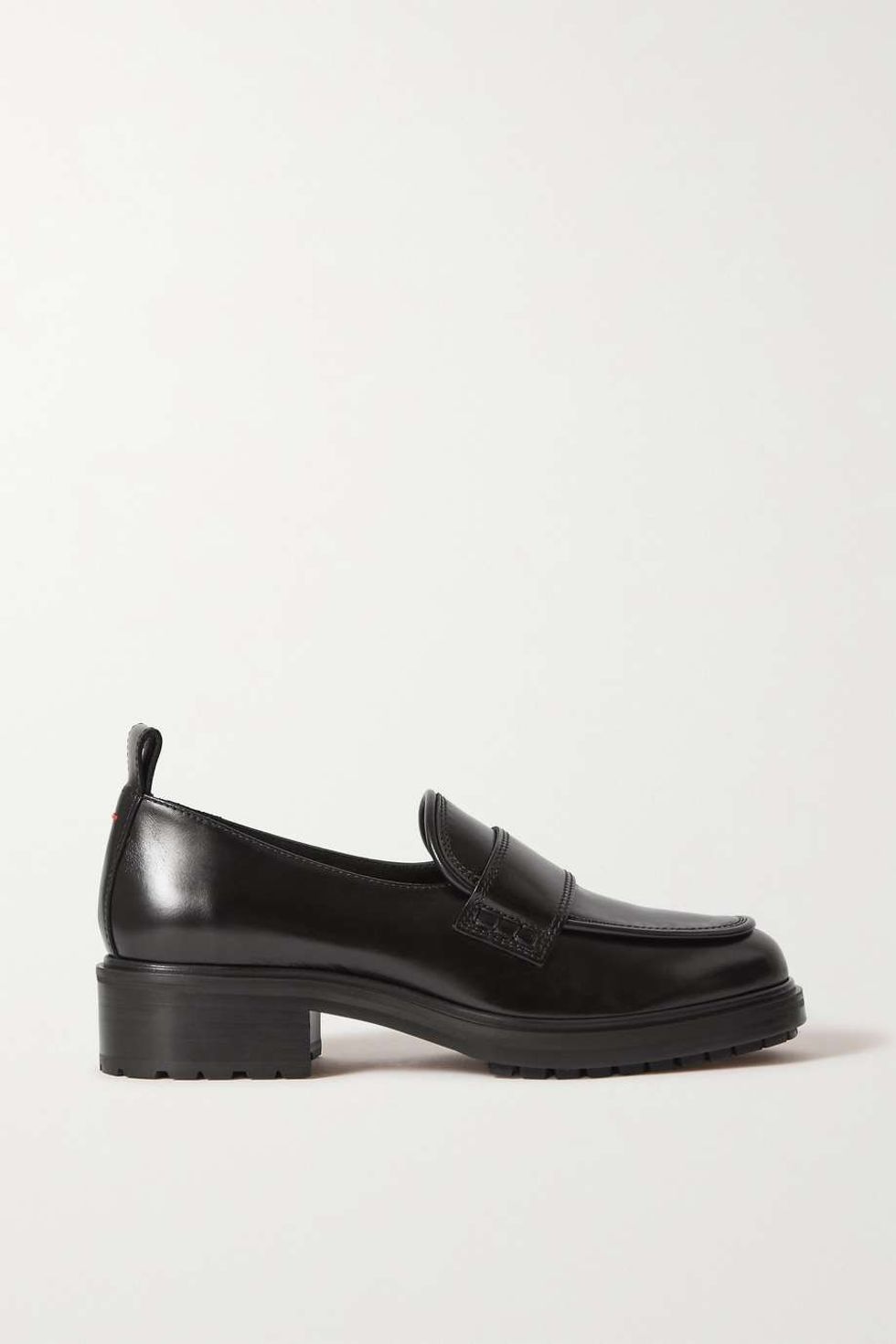 As stylist Gabriella Karefa-Johnson proves, it’s fun to lean into the youthful side of loafers’ preppier roots. Try that in the form of a rugby-stripe shirt dress and striped overshirt. She then embraced a more feminine version of heeled loafers with a classic black trouser sock.
