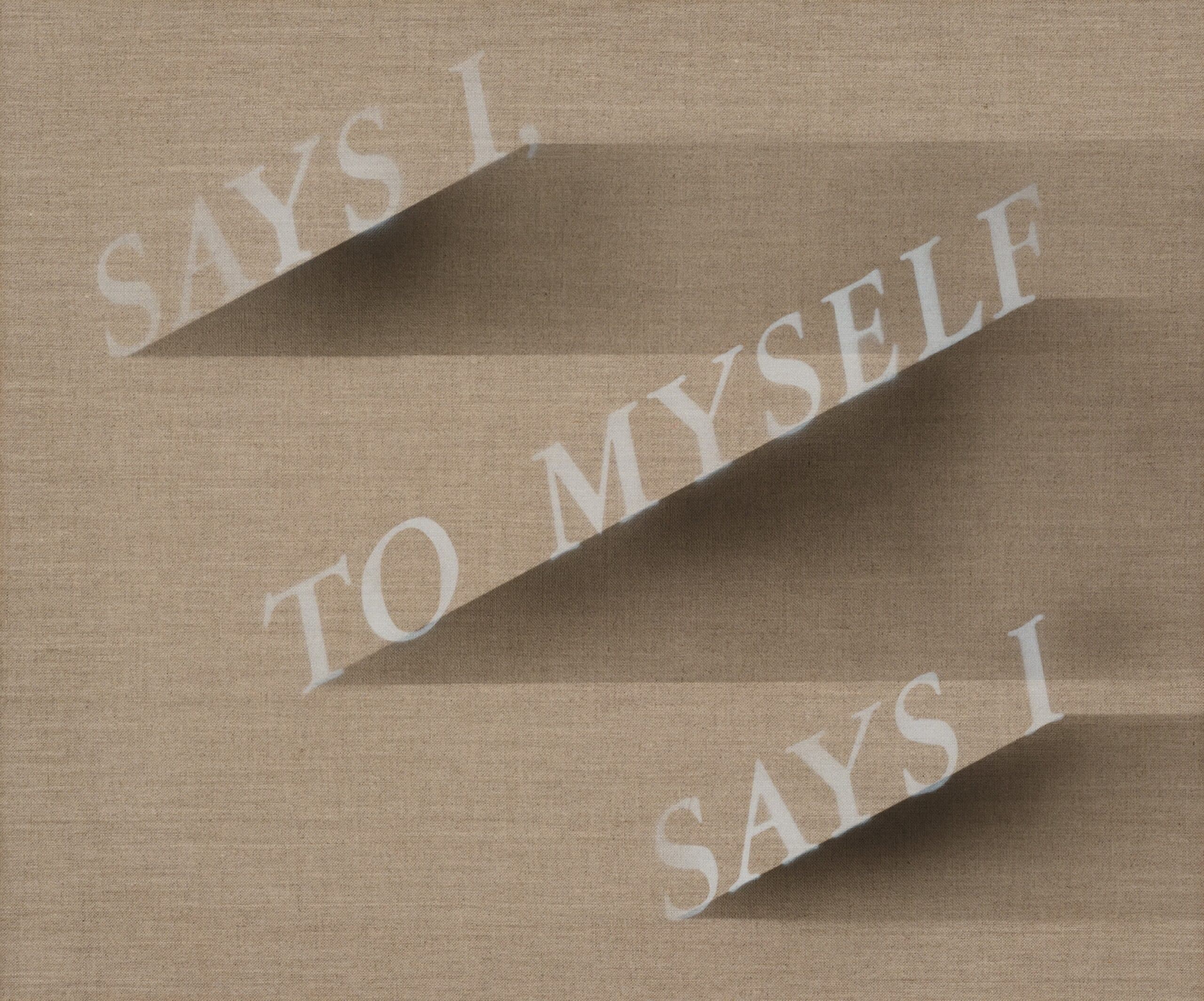For the first time, Ed Ruscha turns his focus entirely to paintings on raw linen. Ten new works feature words that rest lightly on the surface, anchored by shadowed lines that echo horizons. The result is classic Ruscha: everyday phrases rendered enigmatic, balancing wit with quiet restraint.
