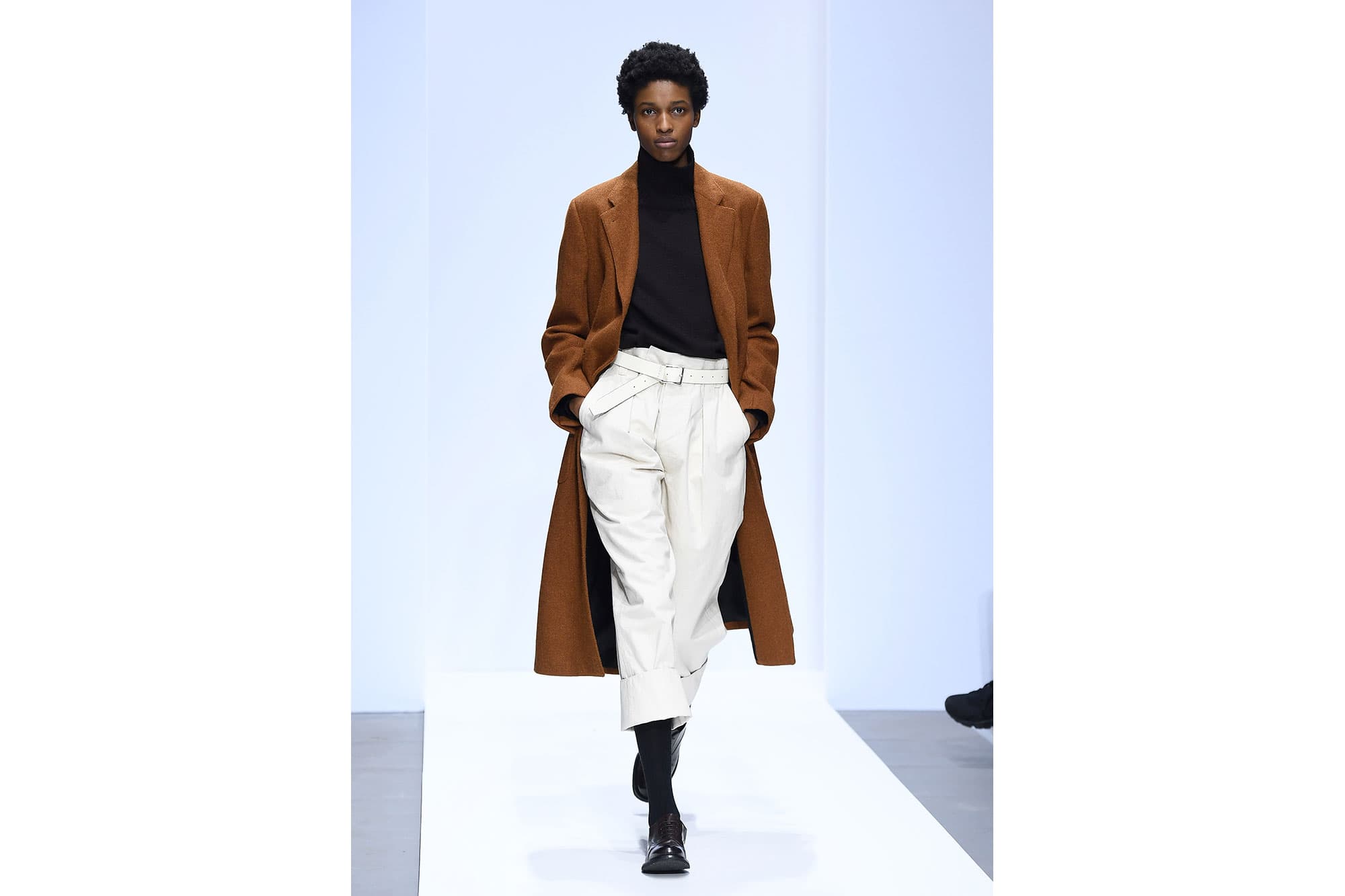 Photo: Getty“It’s rare that I look at a collection and can see myself wearing every single piece, but that was the case once Margaret Howell’s runway photos popped up on my phone. Sublime knitwear, excellent suiting, well-cut shirts—everything was stunning and unfussy, which, let’s be honest, is how most of us want to dress on the daily. I’d even love to snag a few items from the men’s collection. Let’s start with this perfect rust-colored coat, expertly styled with a slim black turtleneck, slouchy trousers, and high socks (with loafers—swoon). I’ll scoop the rest of the shearling coats and relaxed skirts in the very near future.”