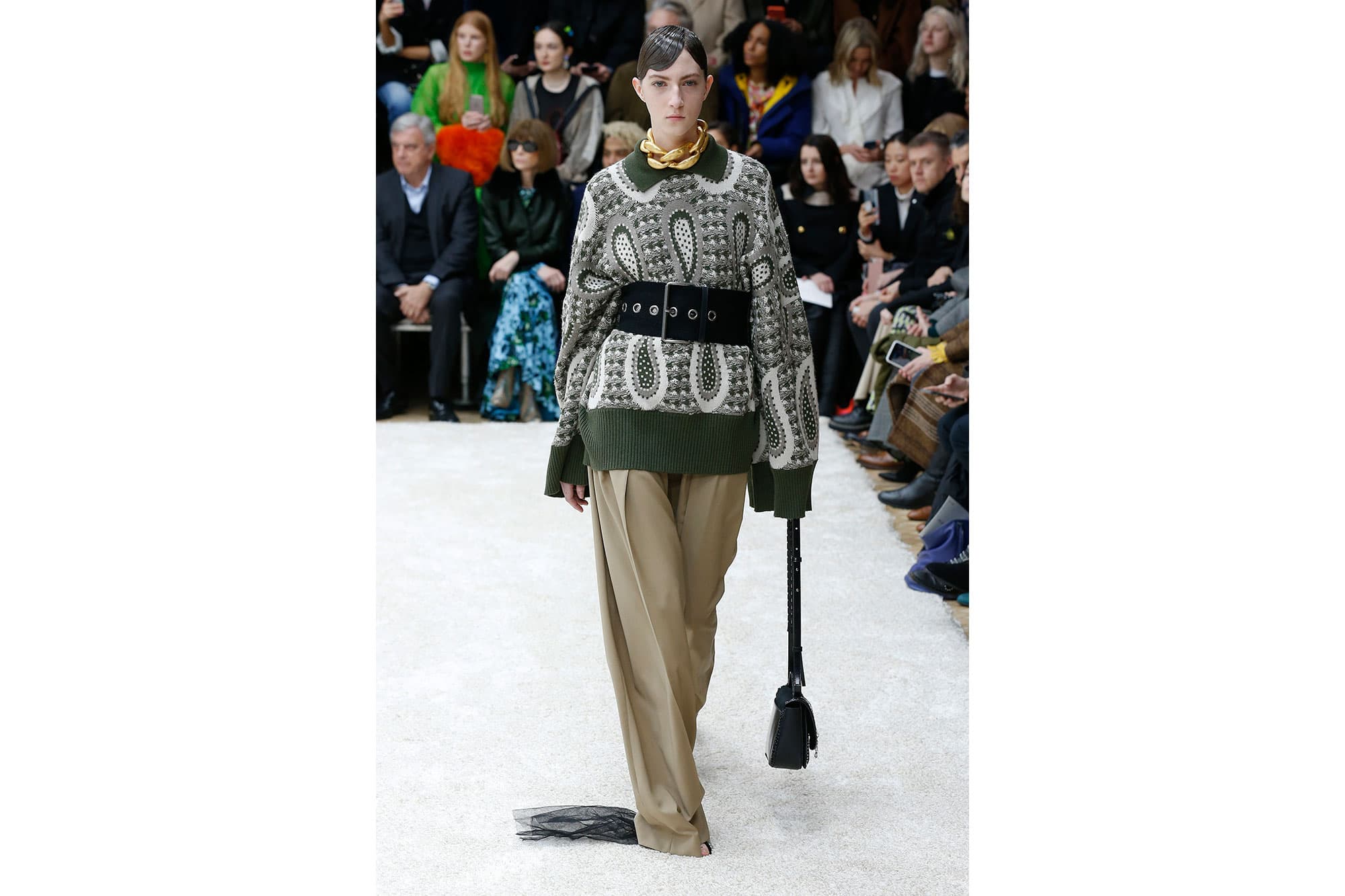 Photo: Getty“I can always look to J.W. Anderson for the perfect oversize sweater. This look in particular elevates the slouchy silhouette by pairing it with wide-legged pants and a luxe gold chain. I am now in full-on search mode for a camel pant to start wearing ASAP.”