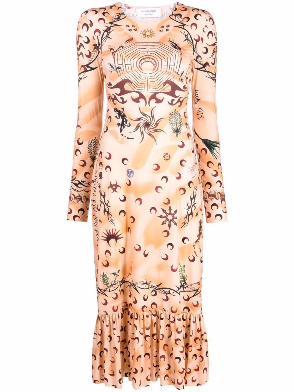 Tattoo-print Frill-hem Dress