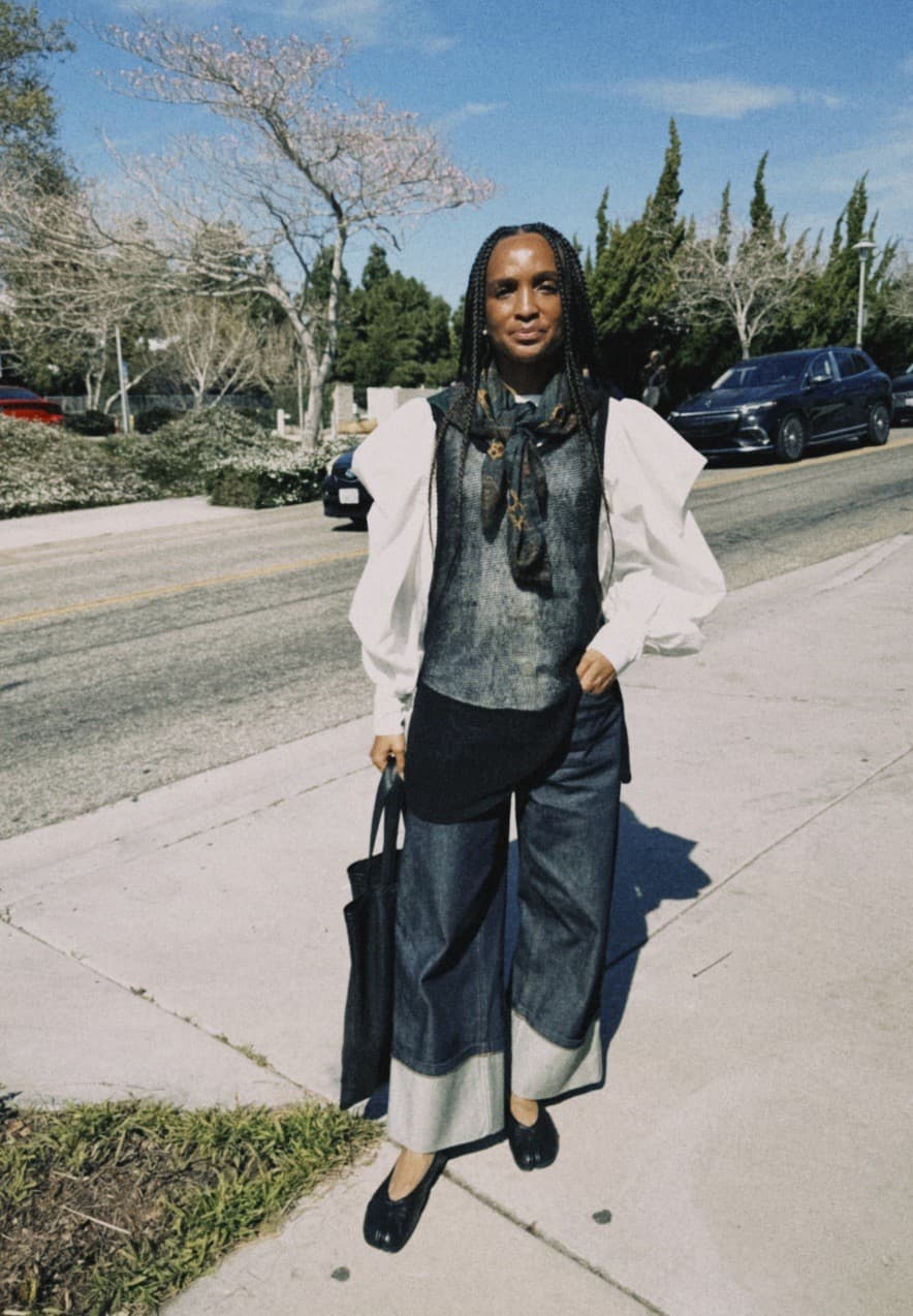 "My full look is Rachel Comey! I actually just left her Melrose Place store, which is one of the best places to shop in LA. Beautifully curated, intimate, and very much in conversation with the city’s art and design community. Rachel actually studied art with Pascal, one of the founders of Broadway gallery which always shows at Frieze LA."