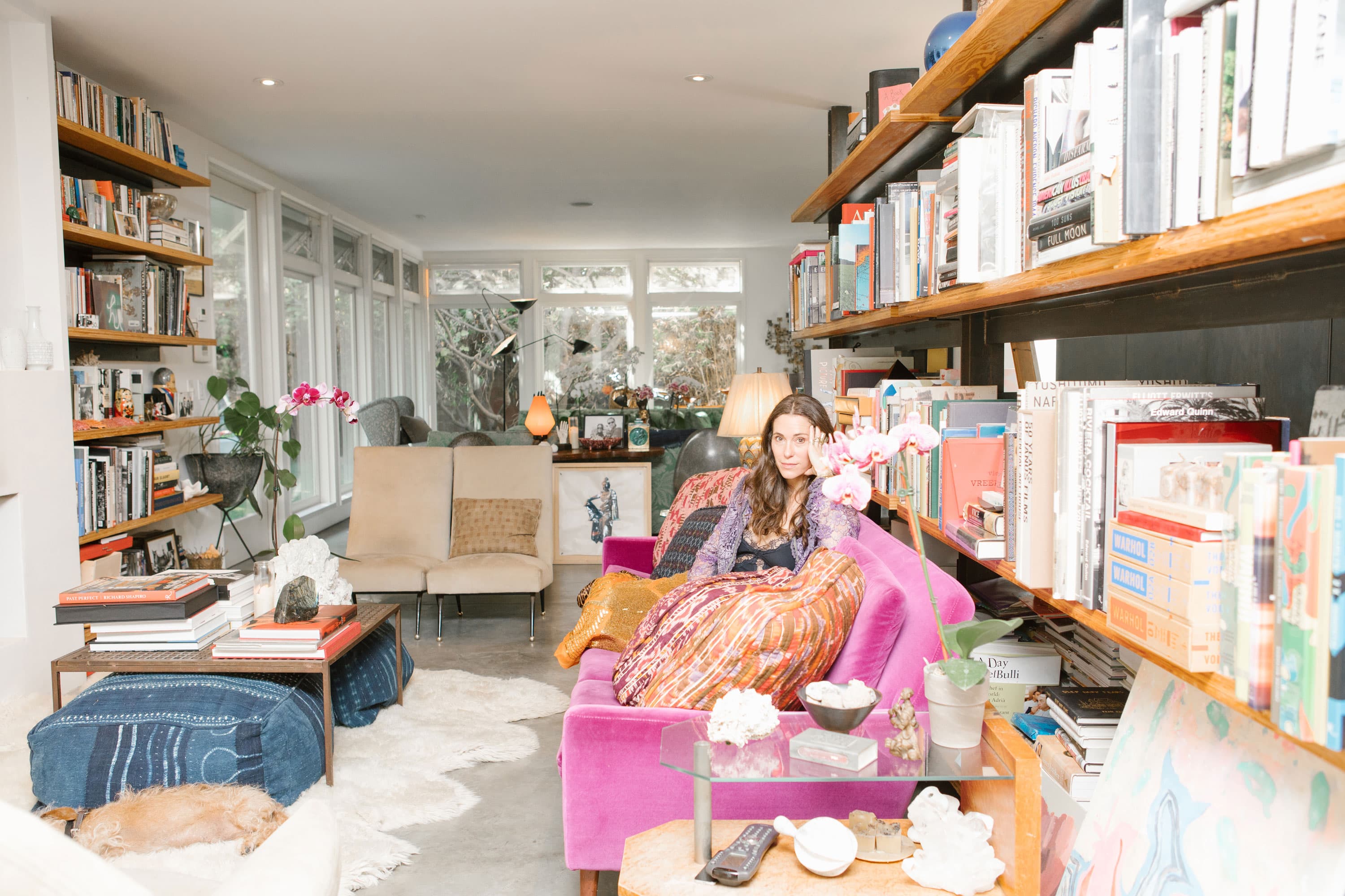 Her stunning Los Angeles home is part of an original case study neighborhood (think: the infamous Ray and Charles Eames House, aka heaven) but that doesn’t mean it didn’t present a few challenges. With a historical protection preventing a second story, Frankfurt, her husband, and their two young children were forced to get creative and build down instead of up. The result is a lofty, open space with dozens of original artworks and furniture collectibles.
