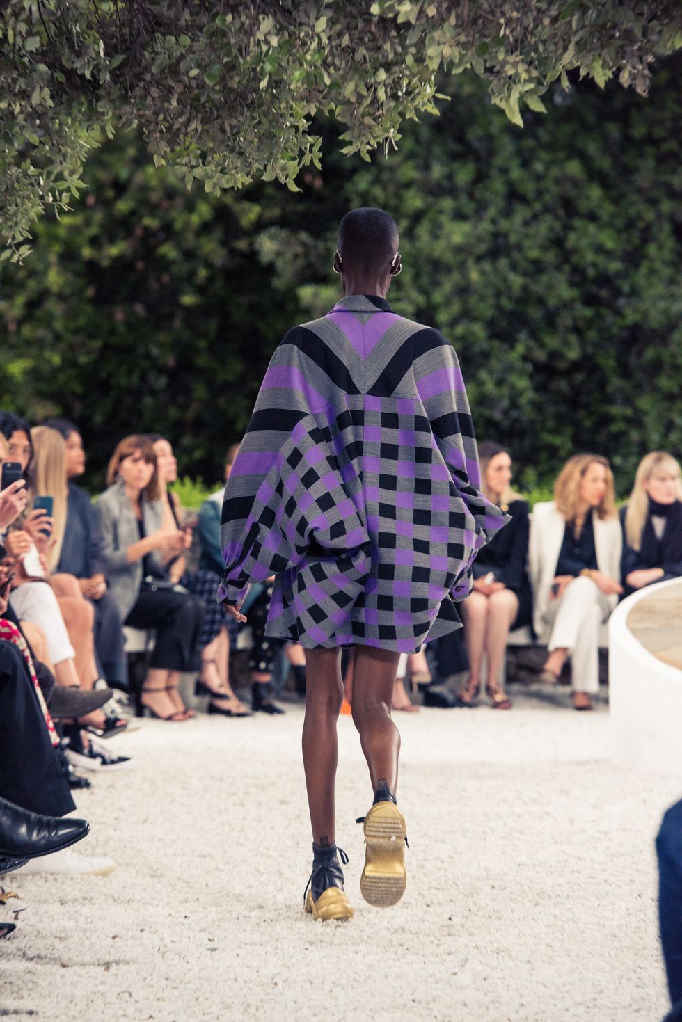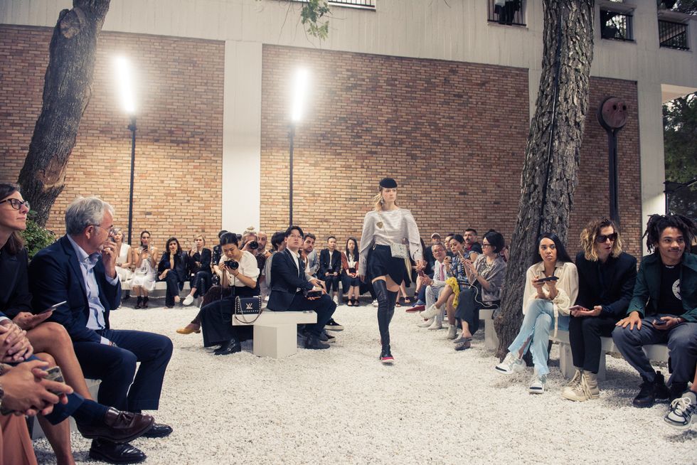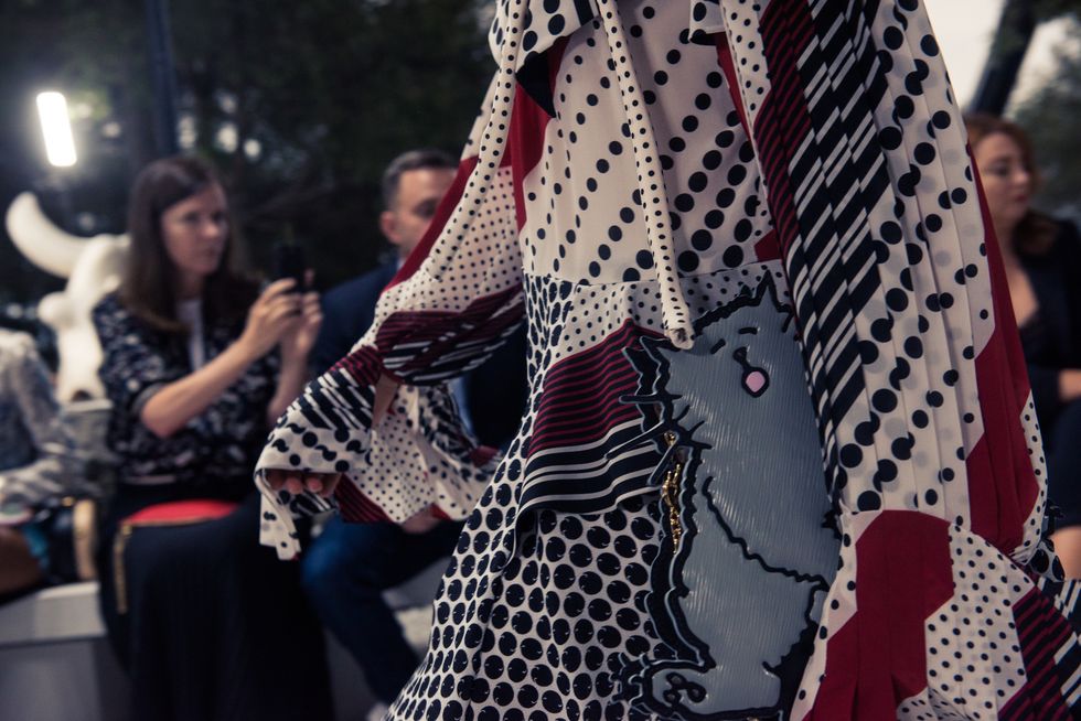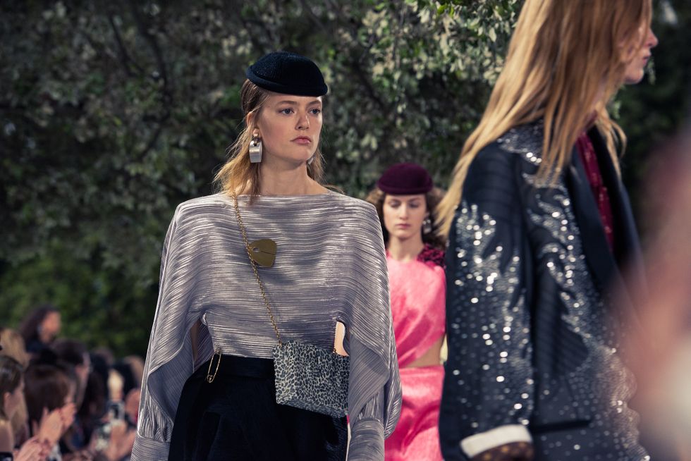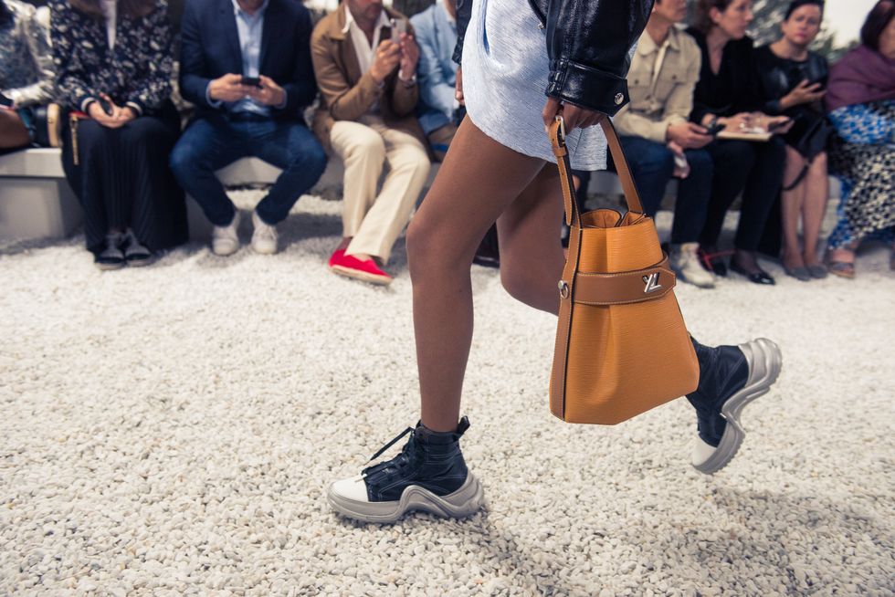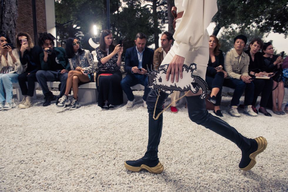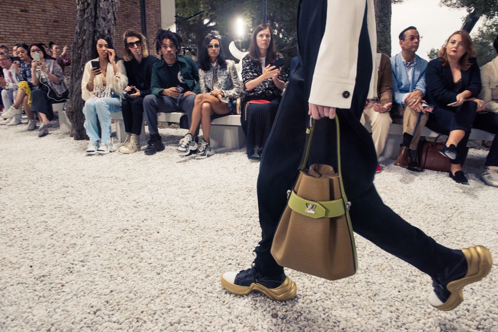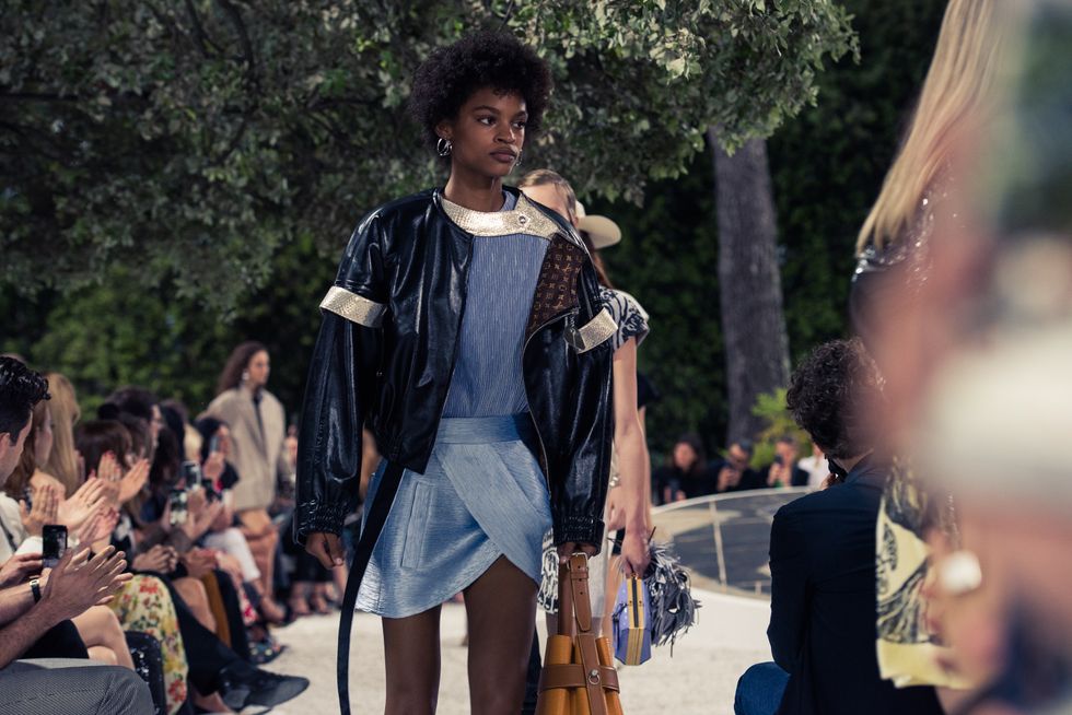 Yesterday, we stepped into Saint-Paul-de-Vence’s Fondation Maeght for the Louis Vuitton Resort 2019 show, where Nicolas Ghesquière sent models down the runway in layers of deconstructed and reimagined separates. Prints ran the gamut from plaid to stripes to florals; there were thigh-high sneaker-boots, *those* trainers that the fashion set is currently obsessed with, and Coddington’s touches—illustrations of her two cats and Ghesquière dog emblazoned on LV-monogrammed accessories.