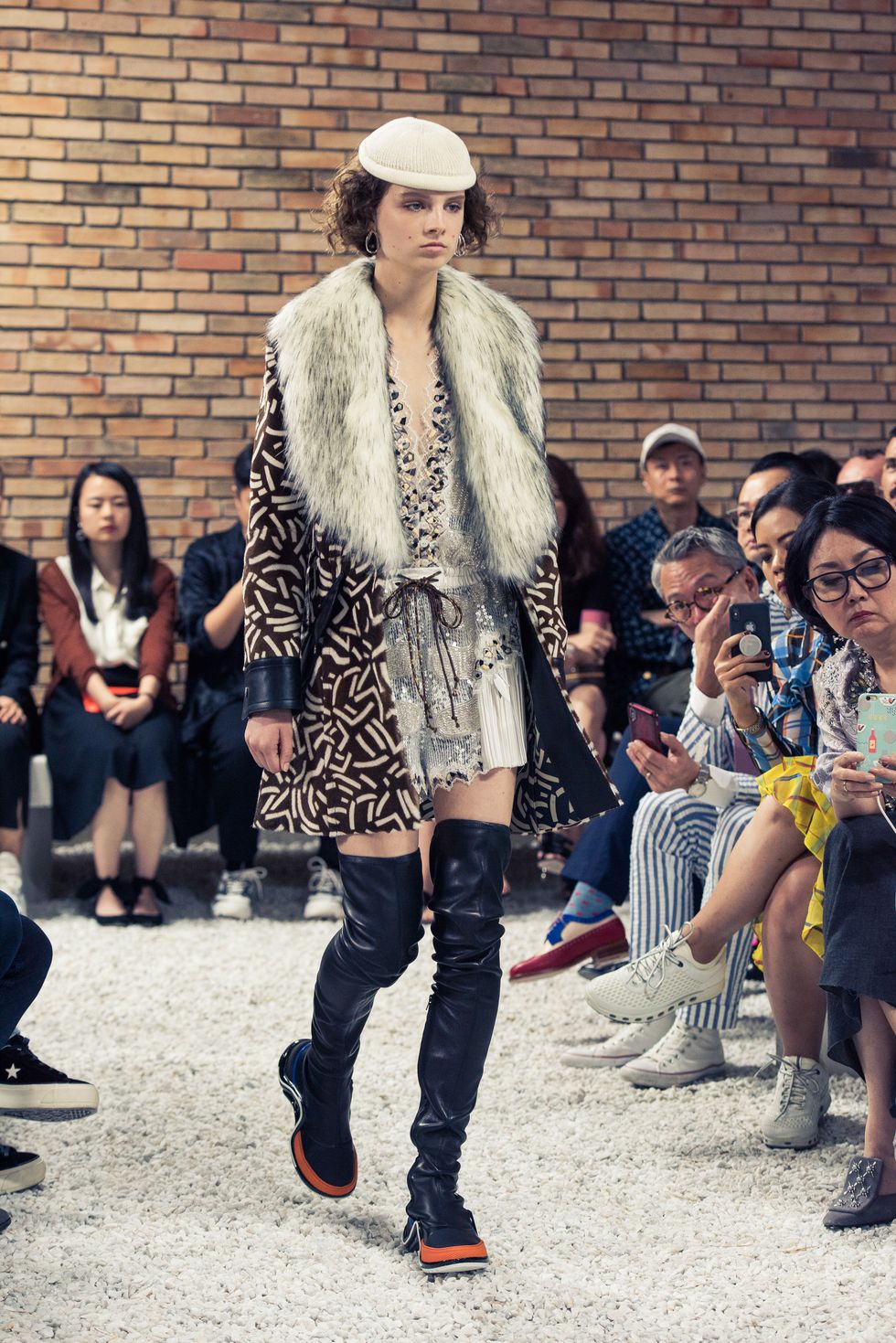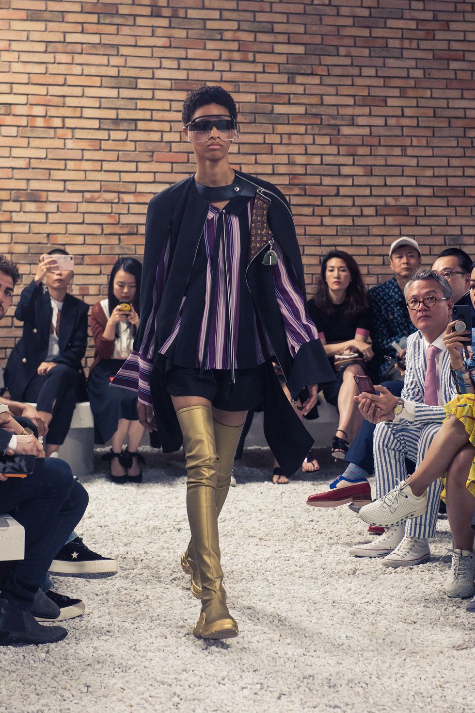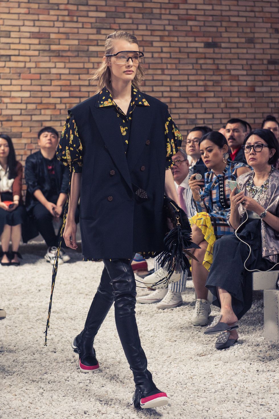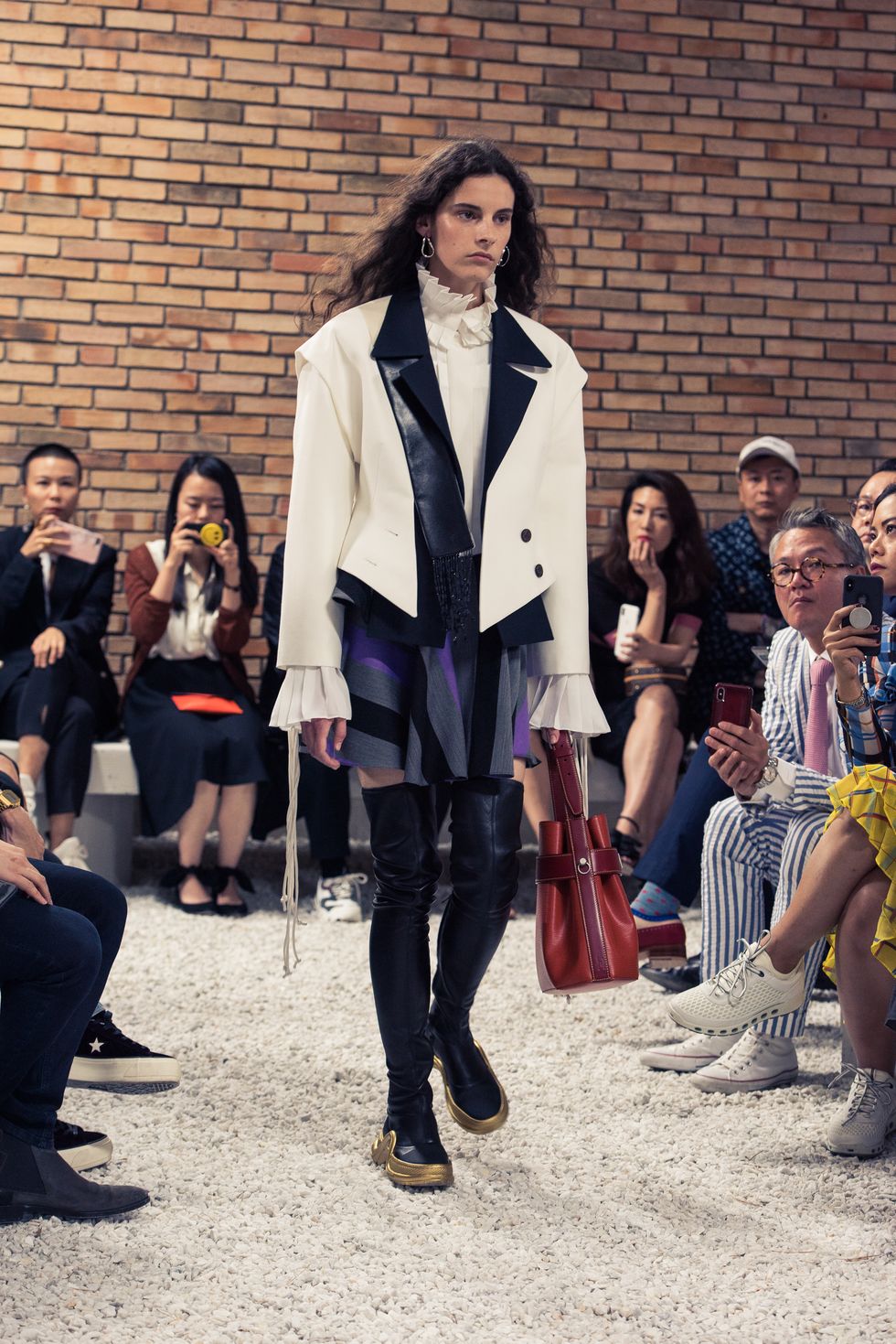 Yesterday, we stepped into Saint-Paul-de-Vence’s Fondation Maeght for the Louis Vuitton Resort 2019 show, where Nicolas Ghesquière sent models down the runway in layers of deconstructed and reimagined separates. Prints ran the gamut from plaid to stripes to florals; there were thigh-high sneaker-boots, *those* trainers that the fashion set is currently obsessed with, and Coddington’s touches—illustrations of her two cats and Ghesquière dog emblazoned on LV-monogrammed accessories.