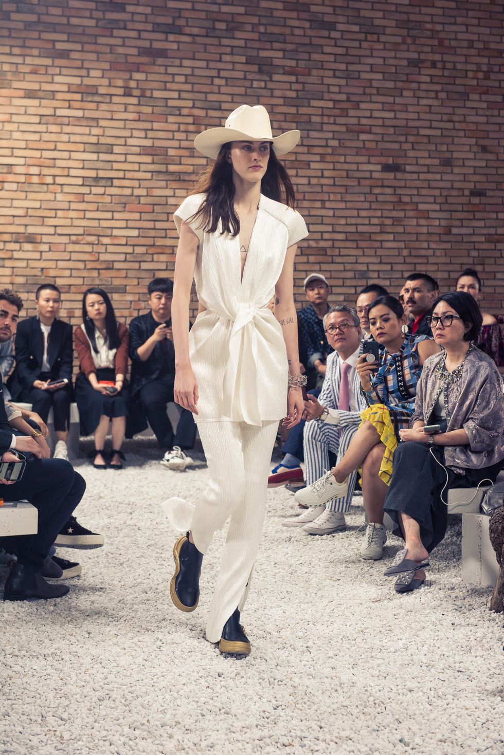 Sitting front row to take in the ’80s-esque denim jackets, dresses knotted at the waist, and short skirts—some silk and flowy some khaki and pleated—was Ruth Negga, Sienna Miller, Peggy Gou, and Luka Sabbat. Here, a glimpse at the show from start to finish, plus all the looks that went down the runway.