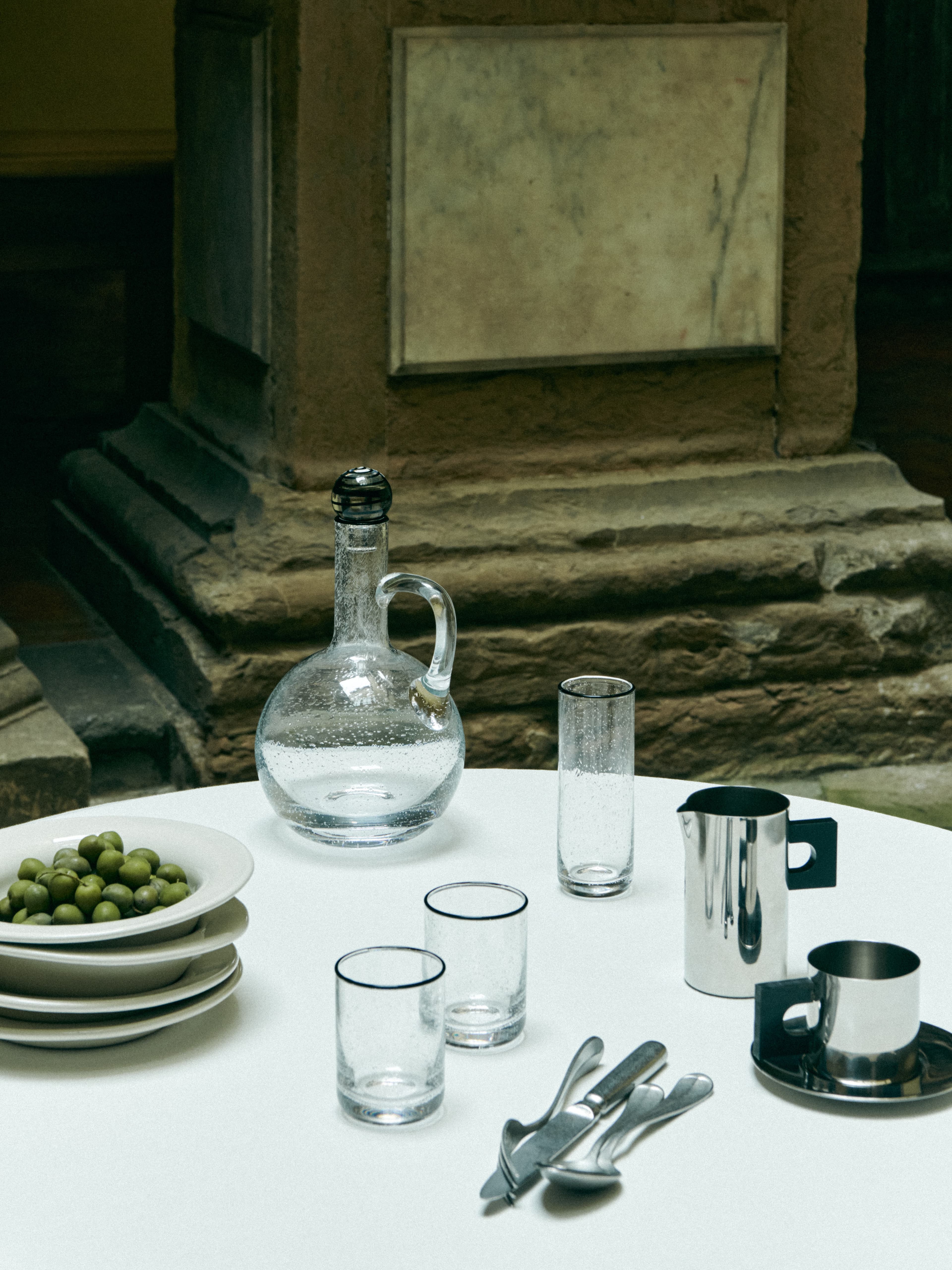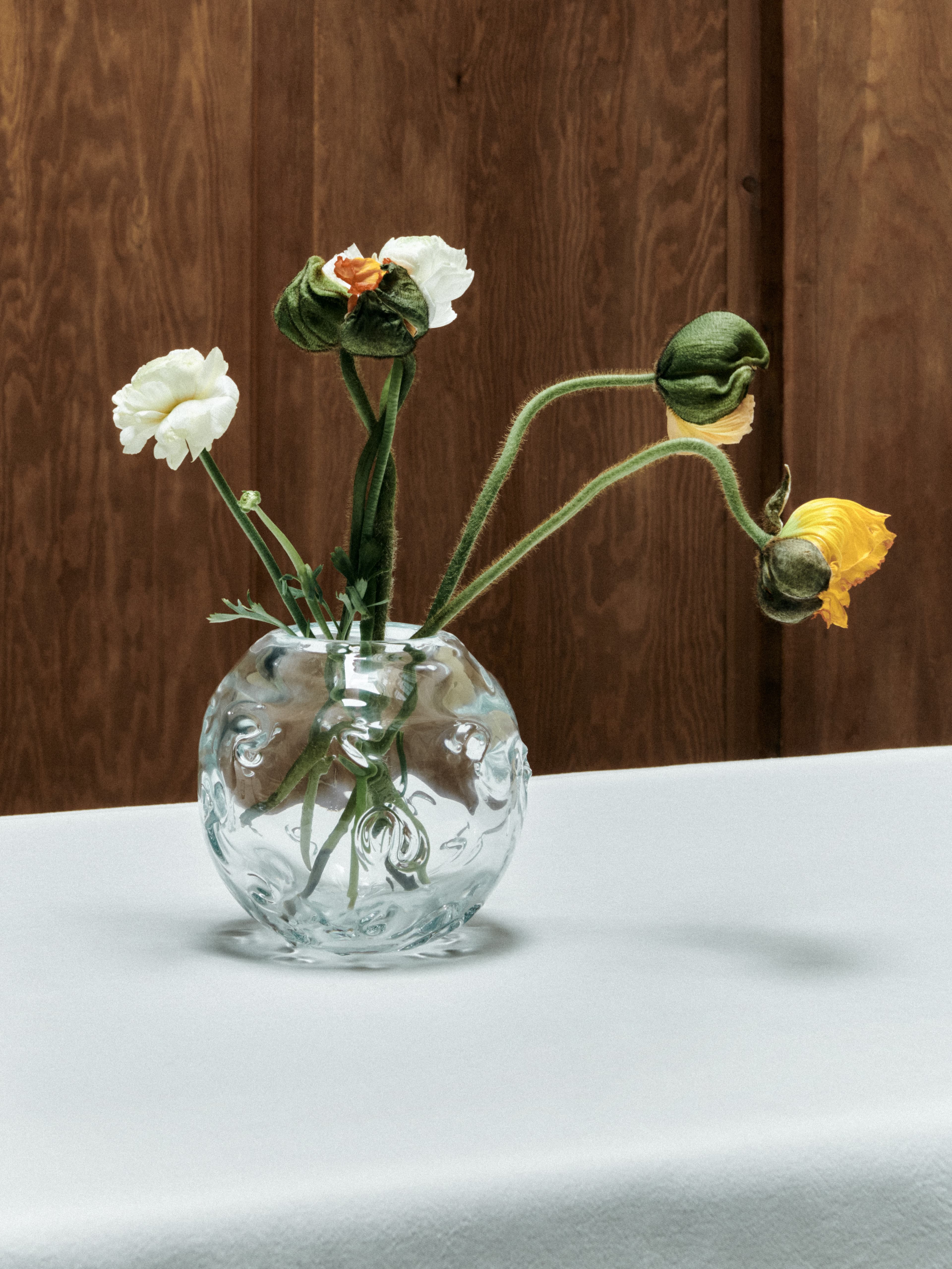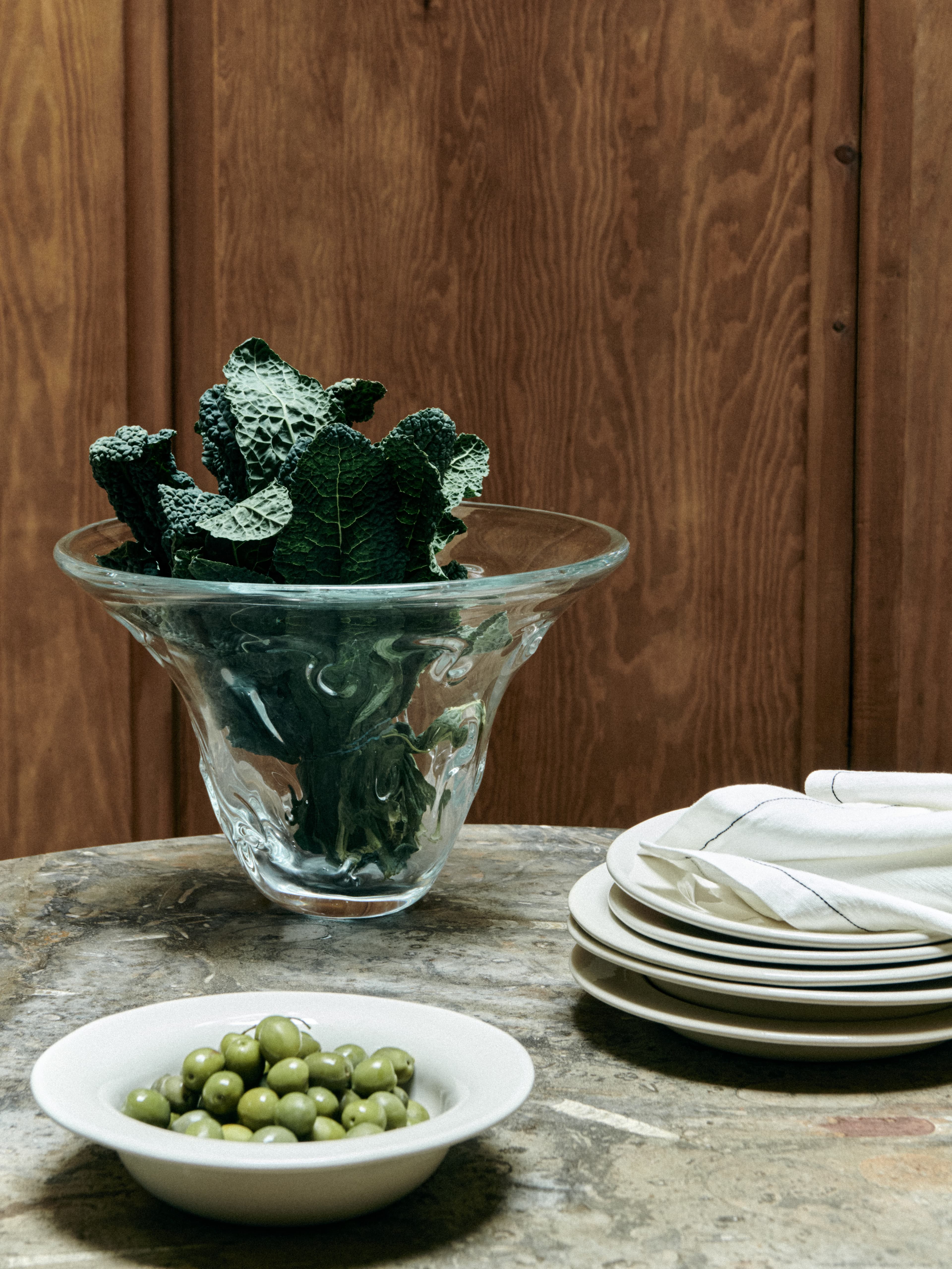 I think that my collection might seem quite minimalistic or sculptural, but I also like to challenge the different organic materials. I refer a lot to cooking, but it's the same to have different foods to fill a plate. To make a room, you need different materials that support each other. If you have the glass, which is more shiny, and then you have some wood, which is more matte, the tactile materials need to talk to each other, you could say.”