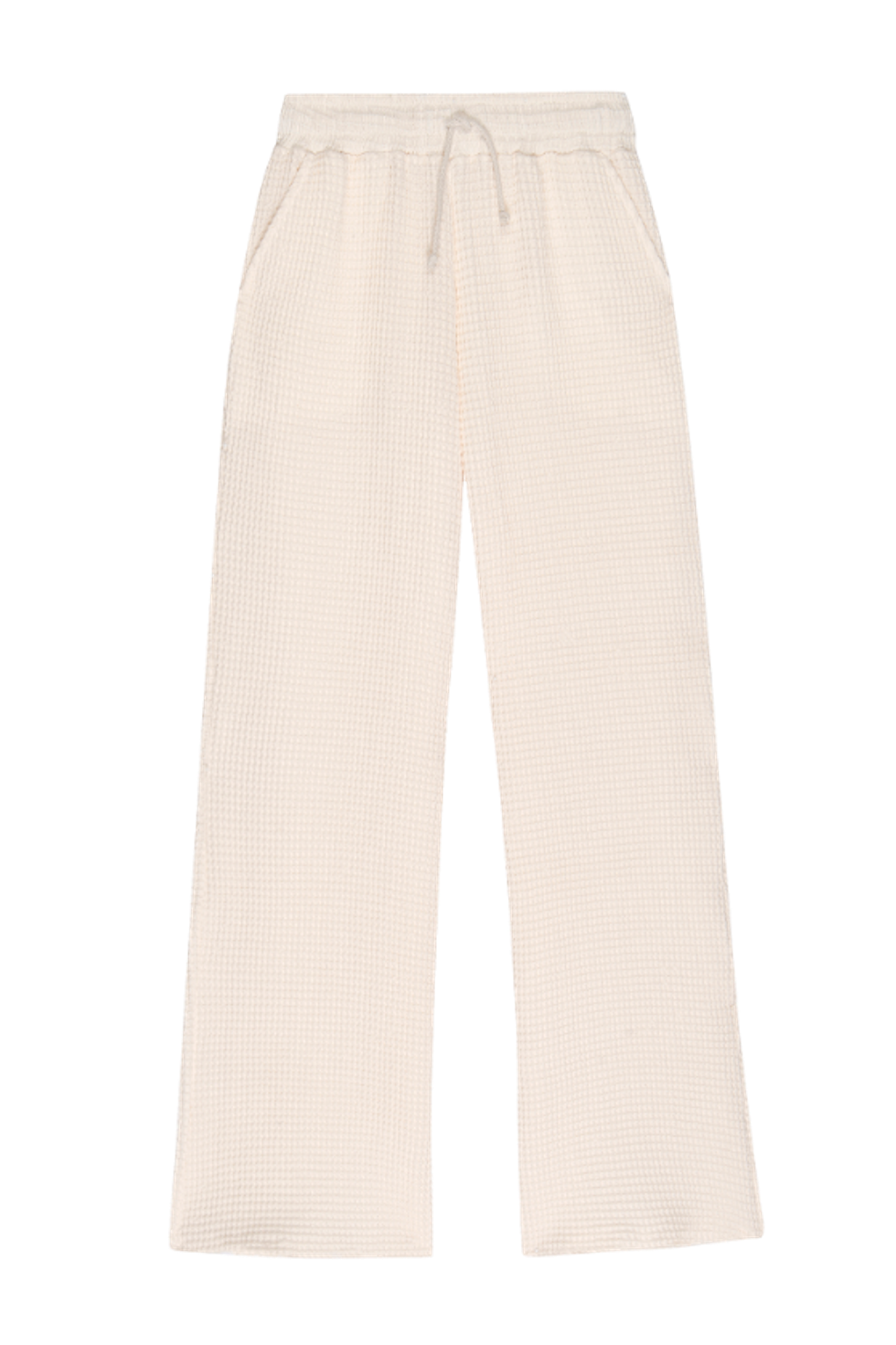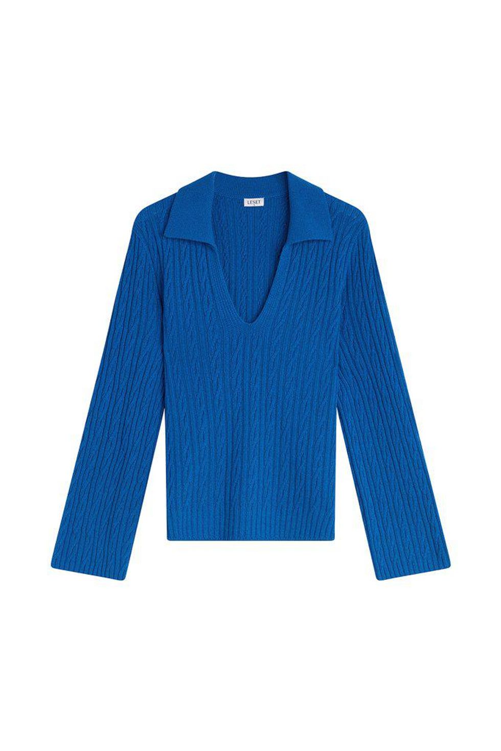"The Leset Rio stirrup pants have been my go-to for a while now. We just released them in white, and I've been wearing them nonstop. I paired them back to our new Zoe deep-V cable pullover in cobalt with Khaite sandals and DMY by DMY sunglasses. I equally love them with sneakers and loafers!"