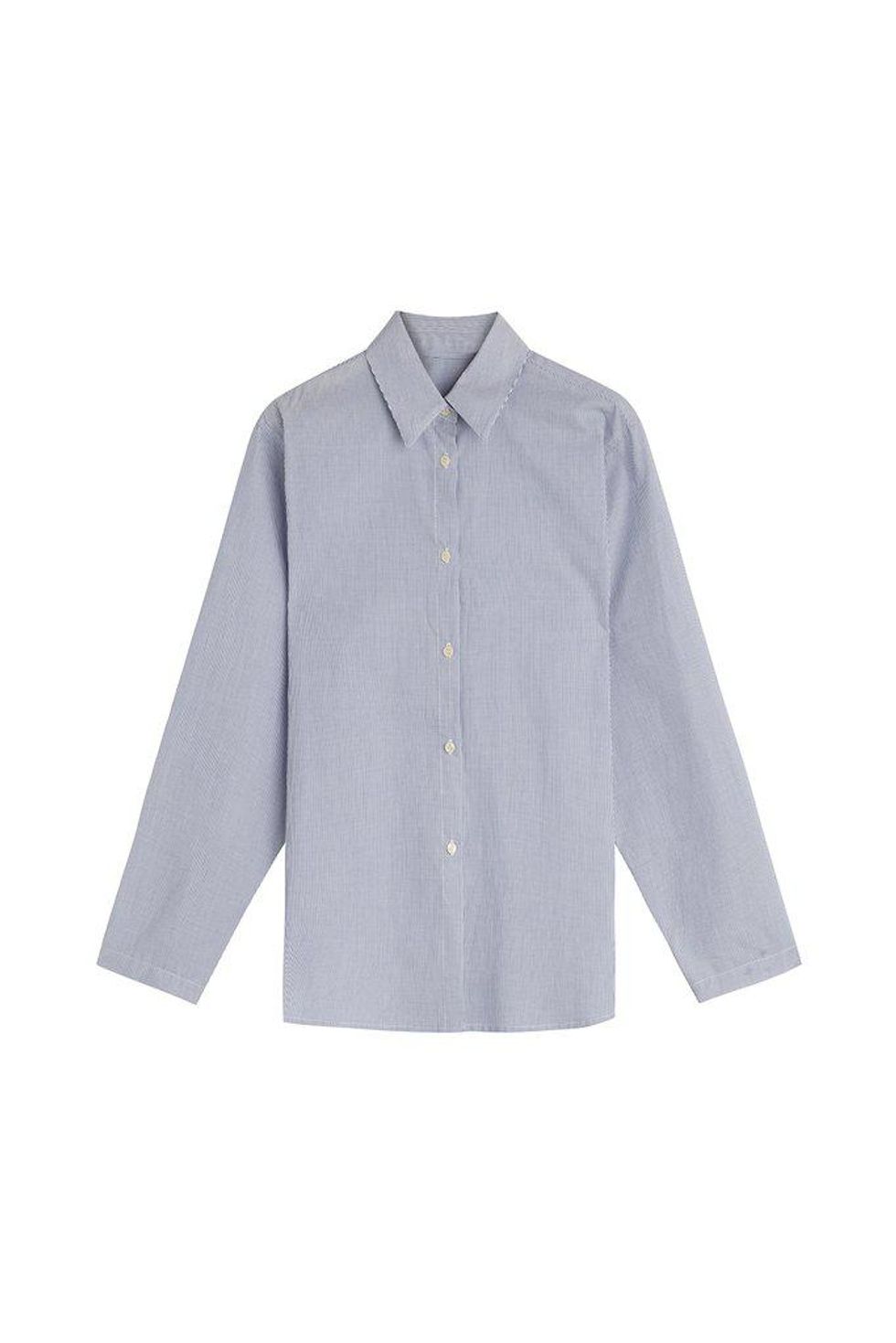 "Wearing an easy pajama-like cabana shirt with denim shorts and sandals is one of the easiest ways to incorporate loungewear in your everyday wardrobe. I love pieces that can be used for both lounging and everyday activities. A shirt of this style is both great with a pair of sweatpants or pj shorts at home but also out and about with denim or even trousers to a nice dinner. The neckline is also great for a necklace, so add on a strand of pearls as a finishing touch."