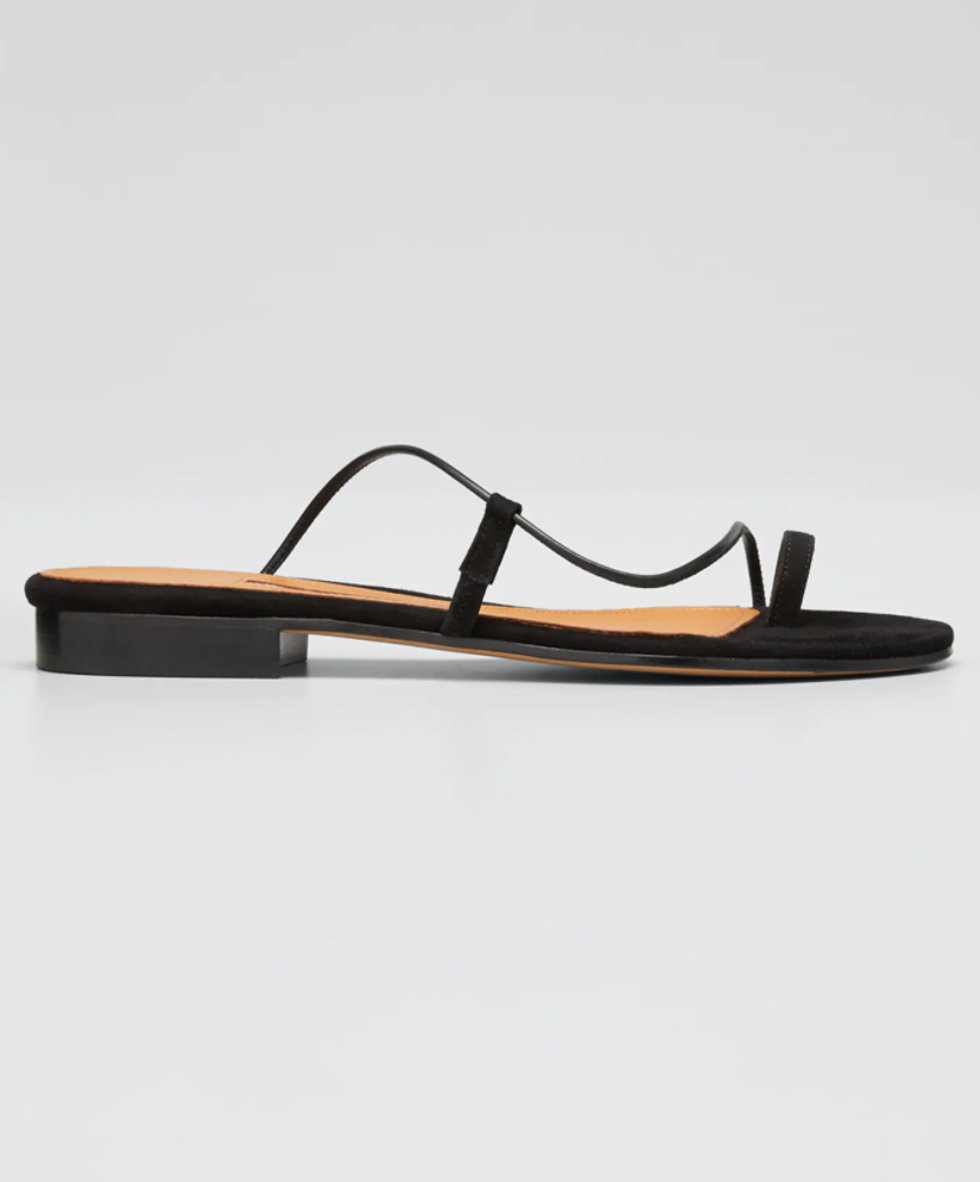 "Our new Leset Eve Stripe Set has been my summer staple. Whether I wear the button-down over a bathing suit or as a full set out or to bed at night—it works for all occasions. Here I'm wearing it as a set with Khaite kitten-heel sandals."
