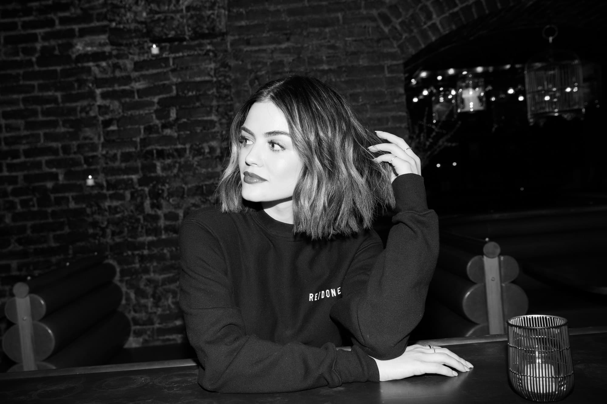 After Lucy Hale emerges from an outfit change at NYC’s Patent Pending, I can’t help but notice the logo on her shirt. Re/Done, it reads in bold white letters, and while I’m well aware of the popular clothing brand, word association tells me it’s quite fitting. Re/Done makes me think of do-over, which makes me think of second chances. When you simplify that, you get the theme of Hale’s new show, Life Sentence. When you go a bit deeper, it’s the current phase of the actress’s career. She’s starting over—no more Aria from Pretty Little Liars. Now she plays Stella: a sick woman who, after years of struggling, receives a clean bill of health—and then has to figure out the rest of her life.