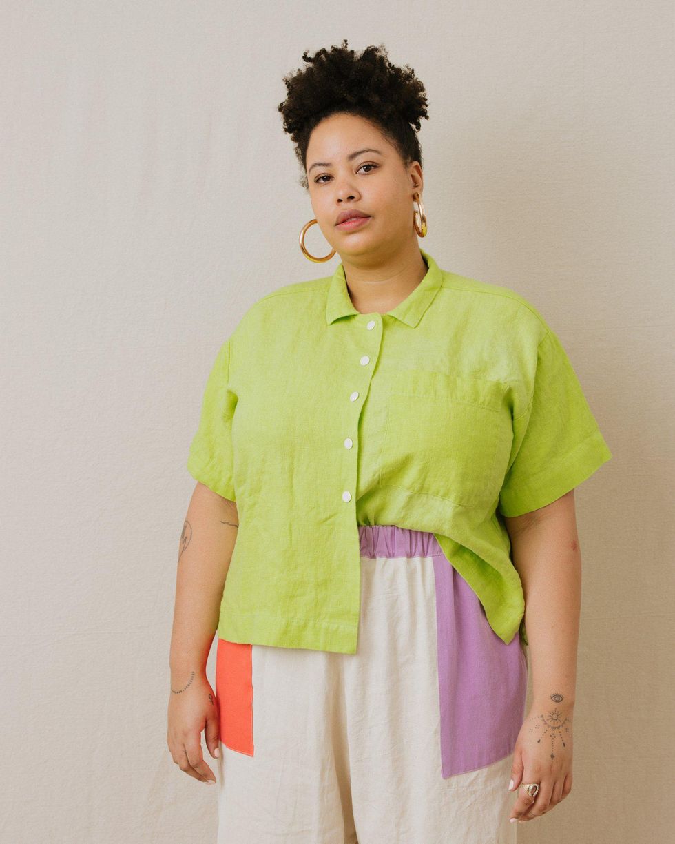 "Who doesn't love a one-and-done? This look is very, very, comfortable. It also holds the record for most compliments when worn. I had a bunch of errands this day, and I felt like the happiest tennis ball. Nettle Studios is one of my favorite size-inclusive, ethically made companies—it's two friends based in San Francisco that make cheerful, comfortable, flex-fit items. It's hard to resist having a full wardrobe—their denim drop this spring was so good!"