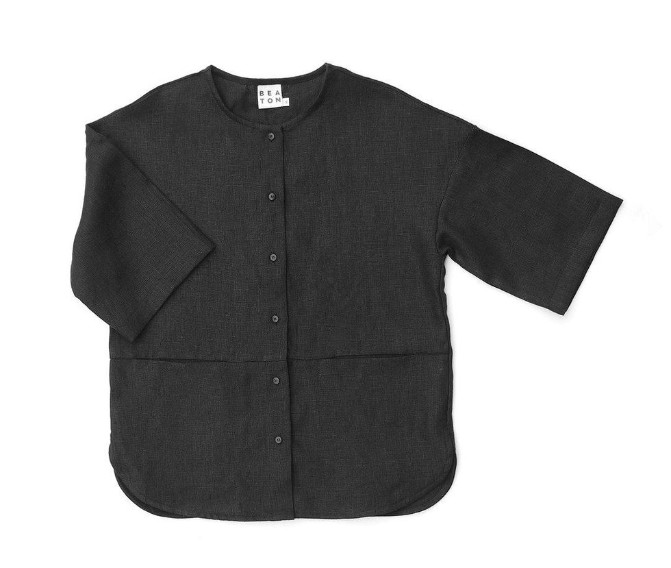 "I am a sucker for fall-apart, supersoft, vintage tees. This unicorn one is a sibling to a panther motorcycle shirt I have. They are probably the two items that are desert-island pieces for me. They took a while to find, and I just love the intense graphics. They're also so, so soft and completely falling apart… This look is very much *Default Setting Lydia.* Simple trouser, easy tee, a layer because I run cold (even in May), and some very special boots. I really love Nicole Saldana's design sensibilities—every pair is nostalgic and unique, yet somehow practical. I'm such a shoe person, so I was really excited to find these on sale at the end of last fall. The heel height is perfect, and the texture is absolutely lovely. My layer is from a Canadian brand that I work with a lot, Beaton Linen. Based in Lund, BC, they make easy-to-wear basics that have a beautifully utilitarian bent. I've got a few pieces from them in rotation!"