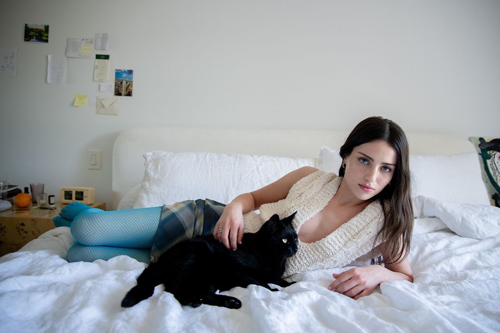 Madeline Argy and I are sitting on her sun-soaked patio in the Hollywood Hills when all of a sudden she freezes. “Oh hell no,” she says, staring at her hand. “What happened?!” I ask, alarmed. “A shit…a bird shit,” she says. I peer at her hand and sure enough: a squiggly sliver of white goo, plopped in the middle of skin between her thumb and pointer finger. “I mean…maybe it’s a good omen?” I offer. She agrees, though slightly dubious, and launches into a story about the last time this happened—at Glastonbury, where a bird managed to land its excrement perfectly inside the cutout of her black tank top. Moments before, a celebrity had slid into her DMs, though she won't say who. "I was like, 'I don't know what this means, but it means something,'" she says.