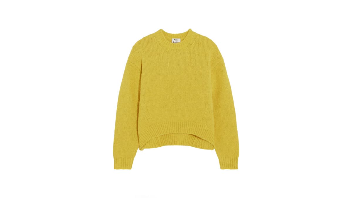 Her style is that perfect blend of wtf-is-that and omg-where-can-I-get-it, so naturally, we had to find out which insanely warm knit is at the top of her wish list. Her choice is a perfectly strange-colored alpaca Acne crewneck—and now we want it too.