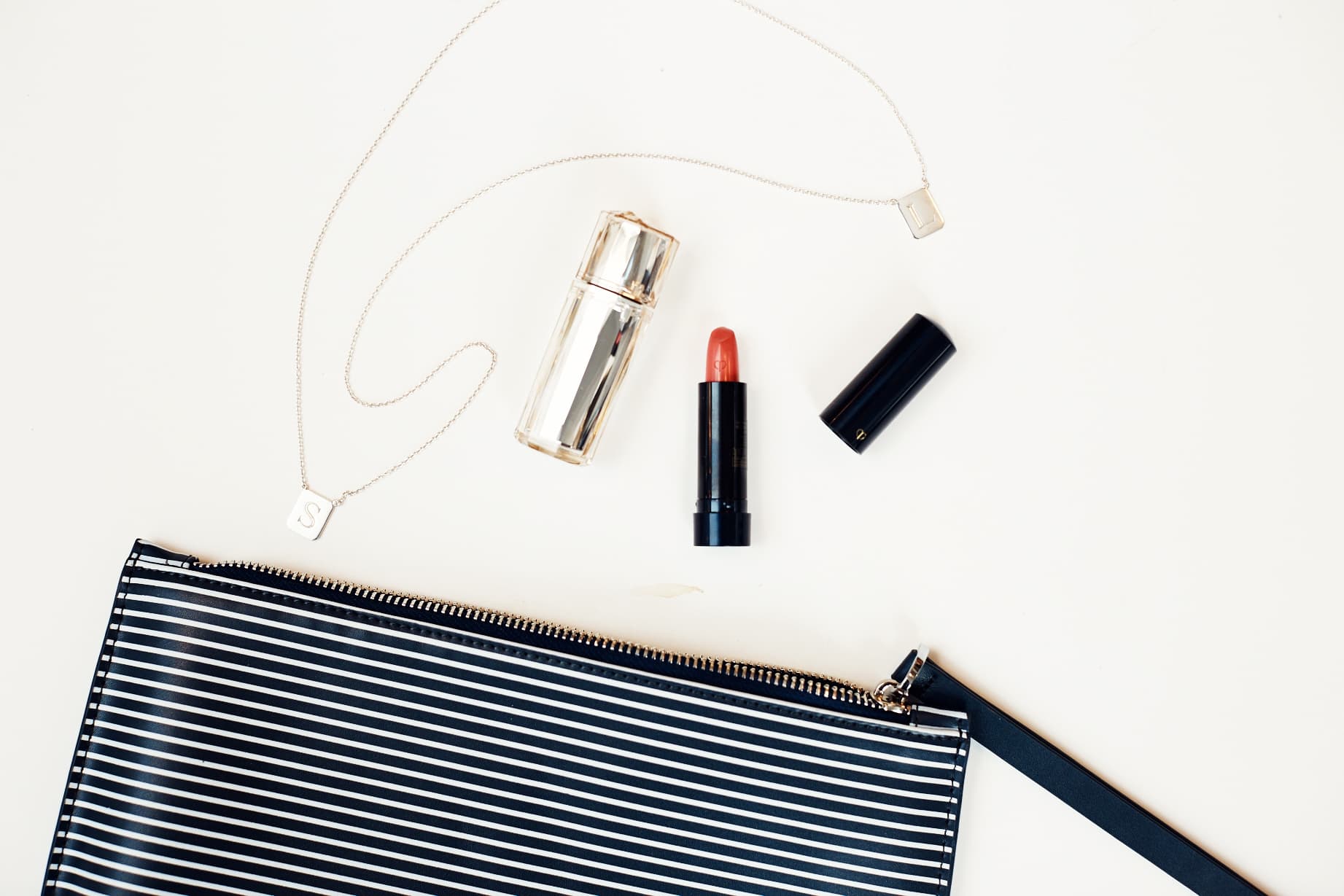 “If you’re getting dressed up, it’s about highlighting one feature on your face, like a gorgeous red lip,” says Macaulay. “If I’m going out, I’m only going to bring out my credit card and lipstick in my clutch or pouch, like the one we just made. It fits just the essentials, and it’s not going to overwhelm the outfit. Less is more; you never see a French woman overladen with accessories.” The designers have a particular affinity for stripes, as they remind them of “Coco Chanel and maybe the French Navy and all those fishing towns, like Saint-Tropez,” she says. “There is something very neutral about stripes. You can pair them with florals or an animal print and still feel put together. It’s kind of a palate cleanser.”