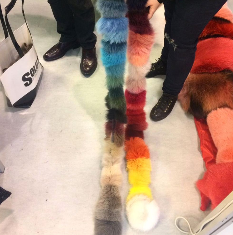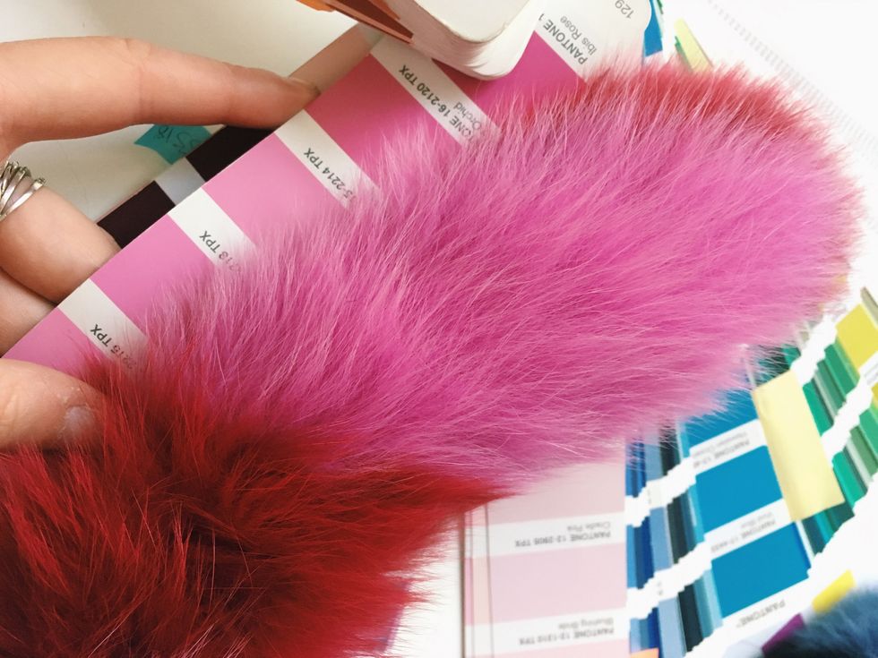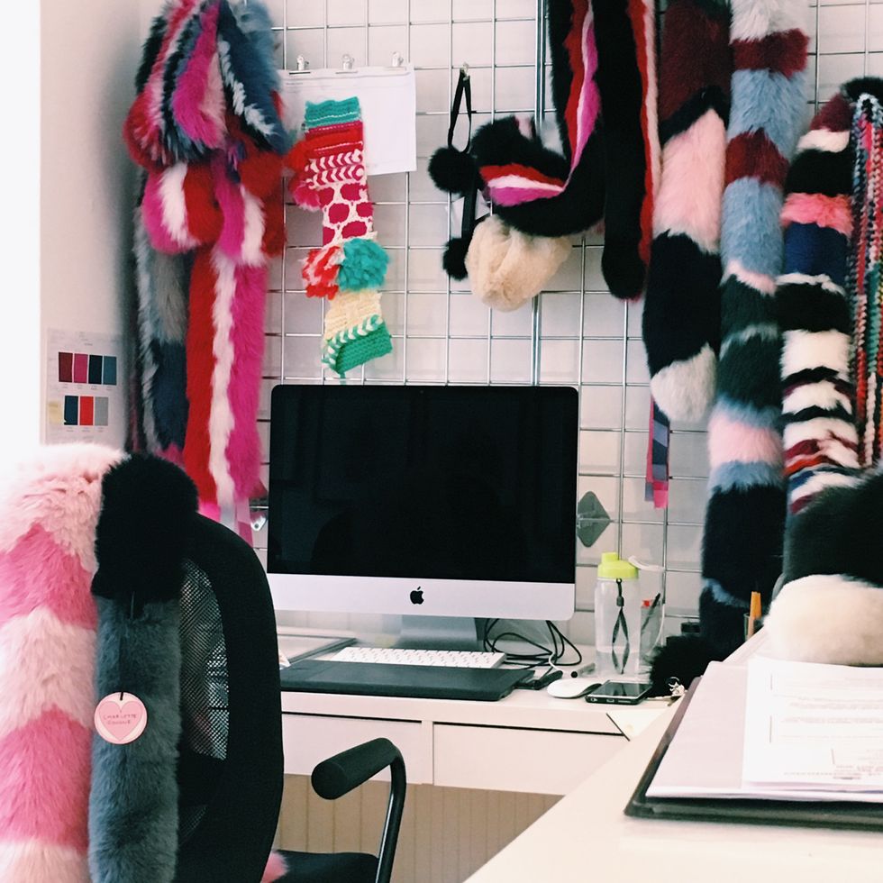 Fall and winter mean wrapping brightly colored scarves around our necks and wearing as many layers as we can at once. Which is why we can’t get enough of Charlotte Beecham, the London-based designer who makes the most whimsical (read: cozy), fluffy and colorful fur scarves, jackets, and hats for her brand, Charlotte Simone.