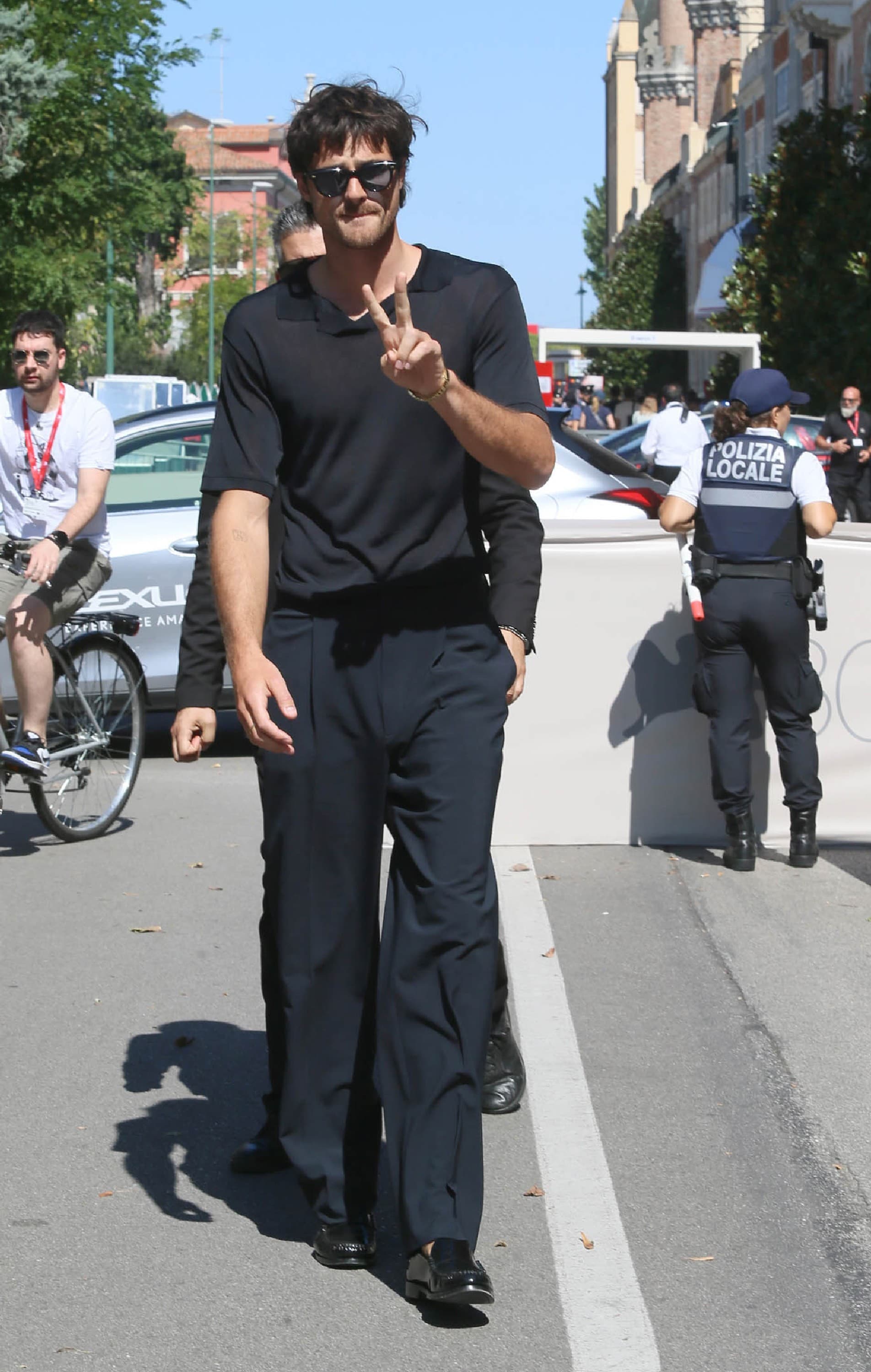 Getty ImagesForget summer whites. Elordi wears a sleek and chic all-black look for summer, consisting of a fine knit polo shirt, suit pants, and classic black leather loafers.