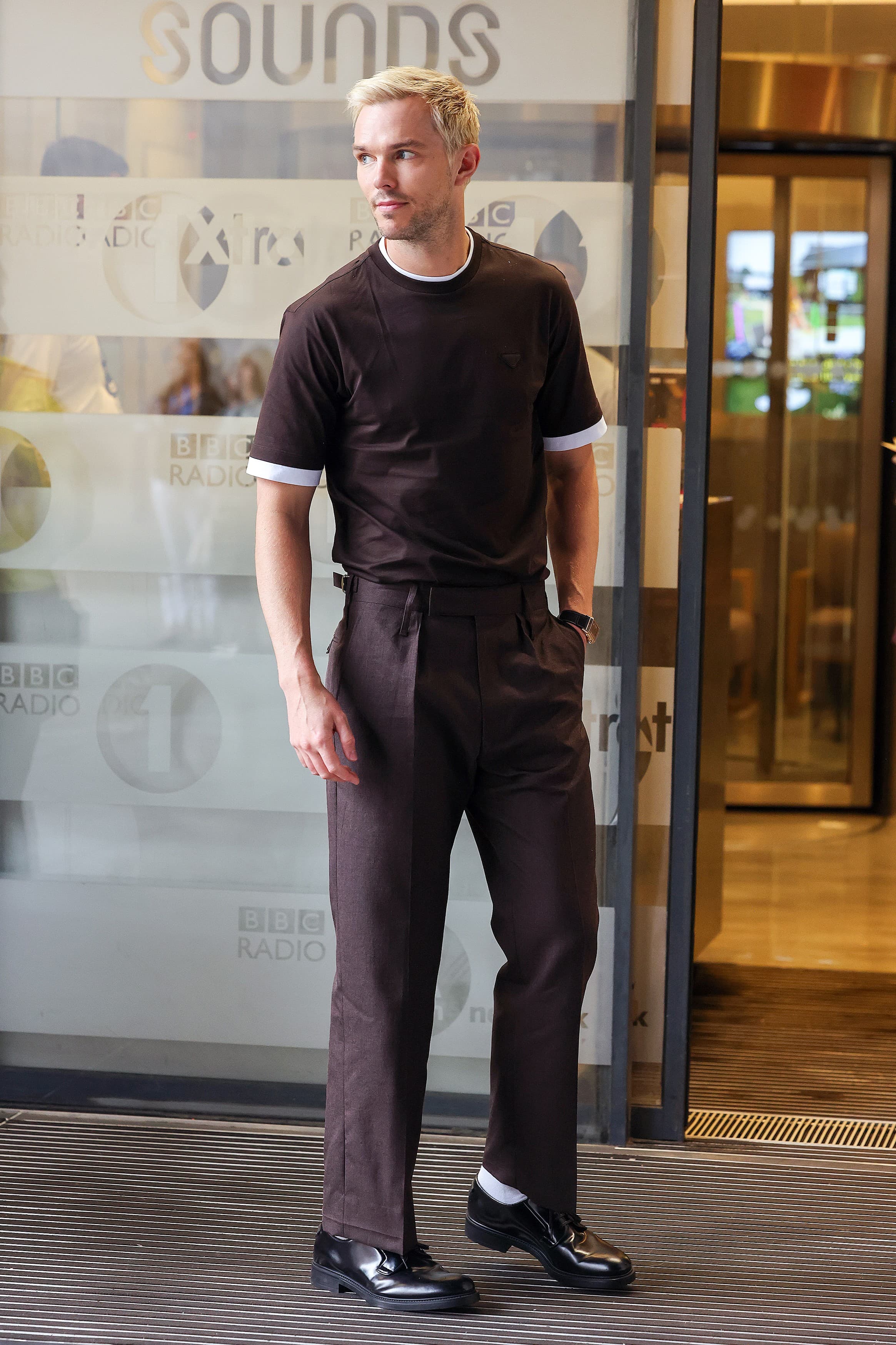 Getty ImagesHoult stepped out recently with freshly bleached hair and a crisp white look to go along with it, pairing his monochrome ensemble with a camel sweatshirt and Prada belt bag.