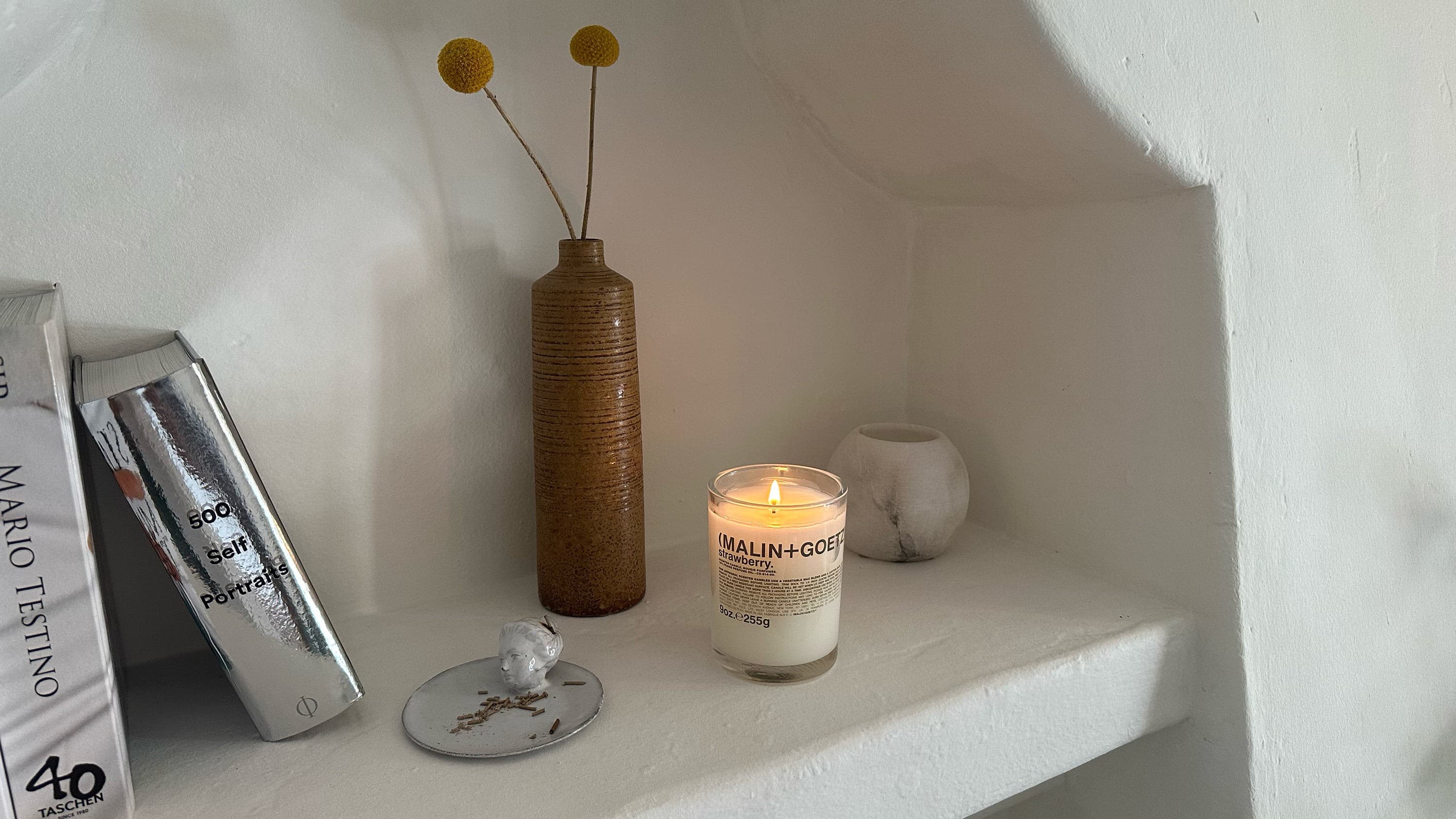 “I’d base it on the room in my home. Let’s take my bedroom, for instance. It’s strictly for rest… among other things… so there are no screens or any form of blue light, blackout shades block out any artificial outdoor light at night, and any scents within need to promote this idea of familiarity and relaxation, while still evoking a sense of sultriness. The strawberry candle does just that: it has an inviting aroma that transforms my bedroom into a comforting oasis and eases my mind after a long day.”