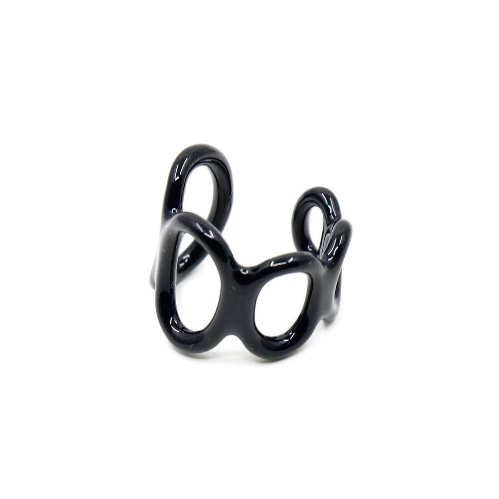 "This look has one of my favorite color combinations—I think I wear it once a week. The pants are probably my favorite silk Loewe pants from seasons ago, and the top I designed and finished this week. It's upcycled organza silk and, since the weather started to warm up, is so light and fresh. I found this vintage Balenciaga bag on The Vintage Bar a few weeks ago and it matched perfectly! The Margiela shoes, honestly, are one of my most comfortable pairs, so I often wear them for a workday. I'm also really in the 'elf' mood—along with my Jupiter rings, these Hank Copenhagen jewelry pieces from their capsule are perfect!"