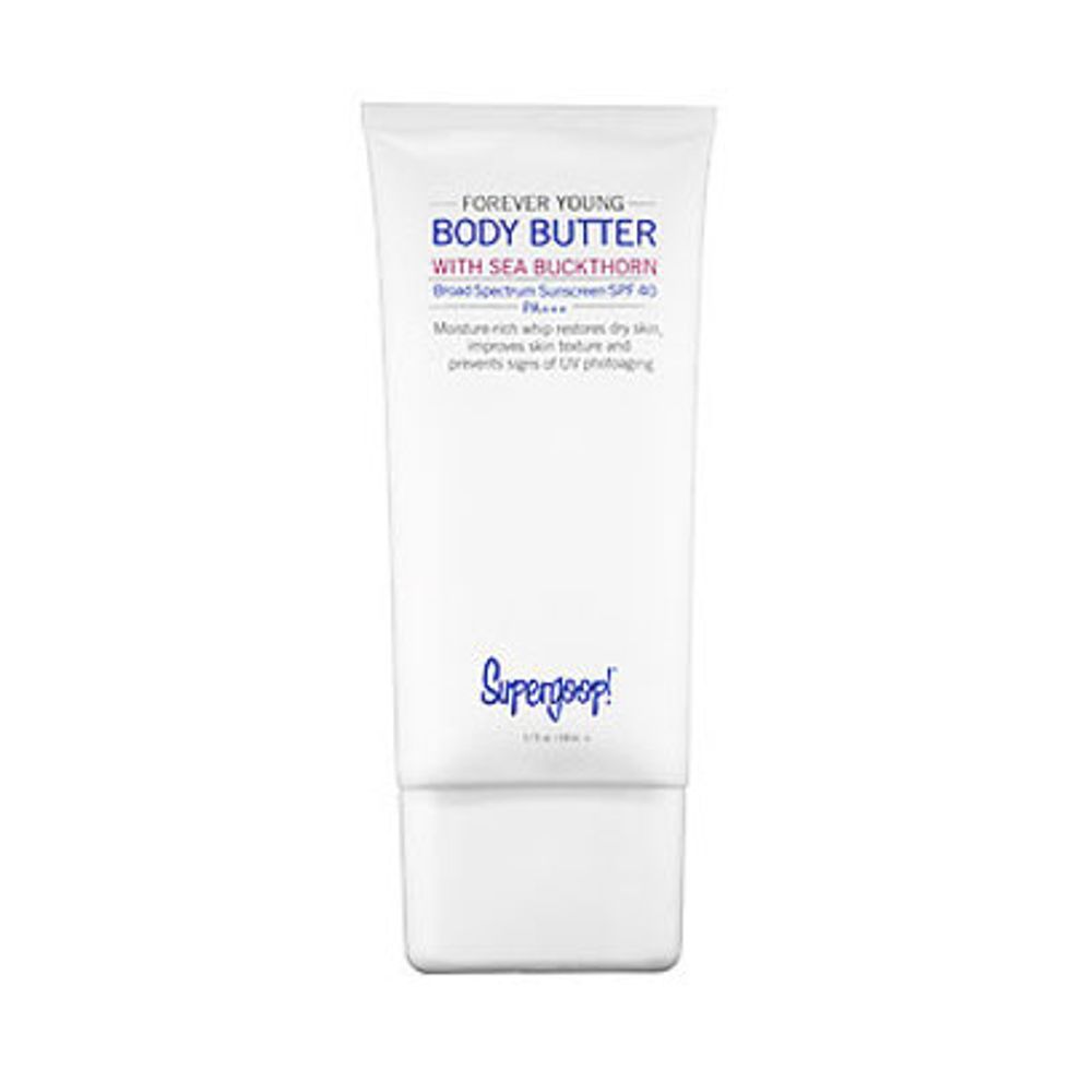 If it’s a day on the court for me, I start right out of the shower with Supergoop Everyday Sunscreen SPF 50 as my face and body lotion. I then make sure I have a can of Antioxidant Infused Sunscreen Mist SPF 50 in my bag as it’s really convenient for courtside reapplication. On days that I am not practicing or playing, I have three go-tos from the care section of our line. First, on my body I’ve started to become obsessed with our Forever Young Body Butter SPF 40. It feels so luxurious on the skin and has a really nice warm scent, you don’t even realize there is SPF in it. For my face, City Sunscreen Serum SPF 30 is my morning moisturizer and a really lovely primer for my foundation. Then throughout the day I touch-up my SPF defense and keep my skin shine-free with our Defense Refresh Setting Mist SPF 50."