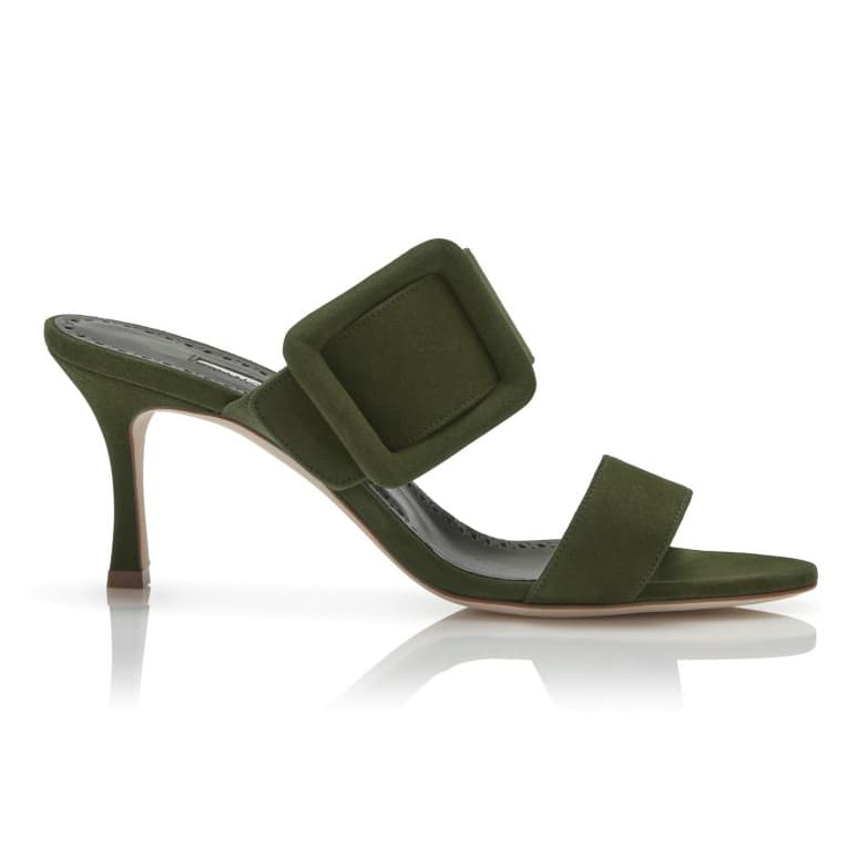 Maysale Suede Buckle Mid-heel 70mm Mules