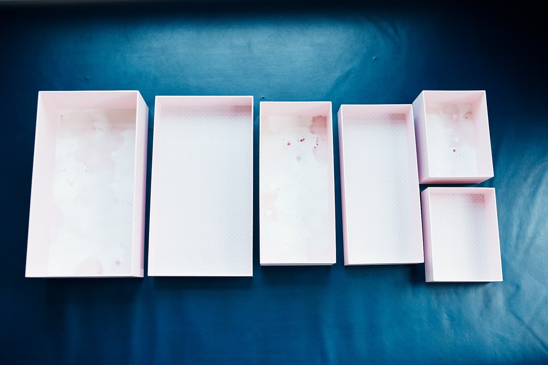 in which to store items out of sight in the precise folding, stacking, and flatlay techniques she suggests. Boxes are some of the only things she found herself suggesting clients actually acquire. Each $89 set comes with a large, medium, and small rectangular box in white, beige, or petal pink. “One of the most important features of the KonMari method is that you don’t just start jamming things into boxes,” Kondo tells me through her translator as we sit in the Bryant Park Hotel in New York City. “You have to go through the selection process, and after you’ve identified which items truly spark joy for you, then you start to carefully fold the items and store them.”